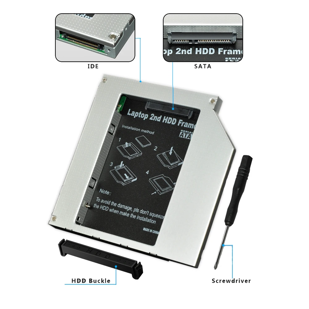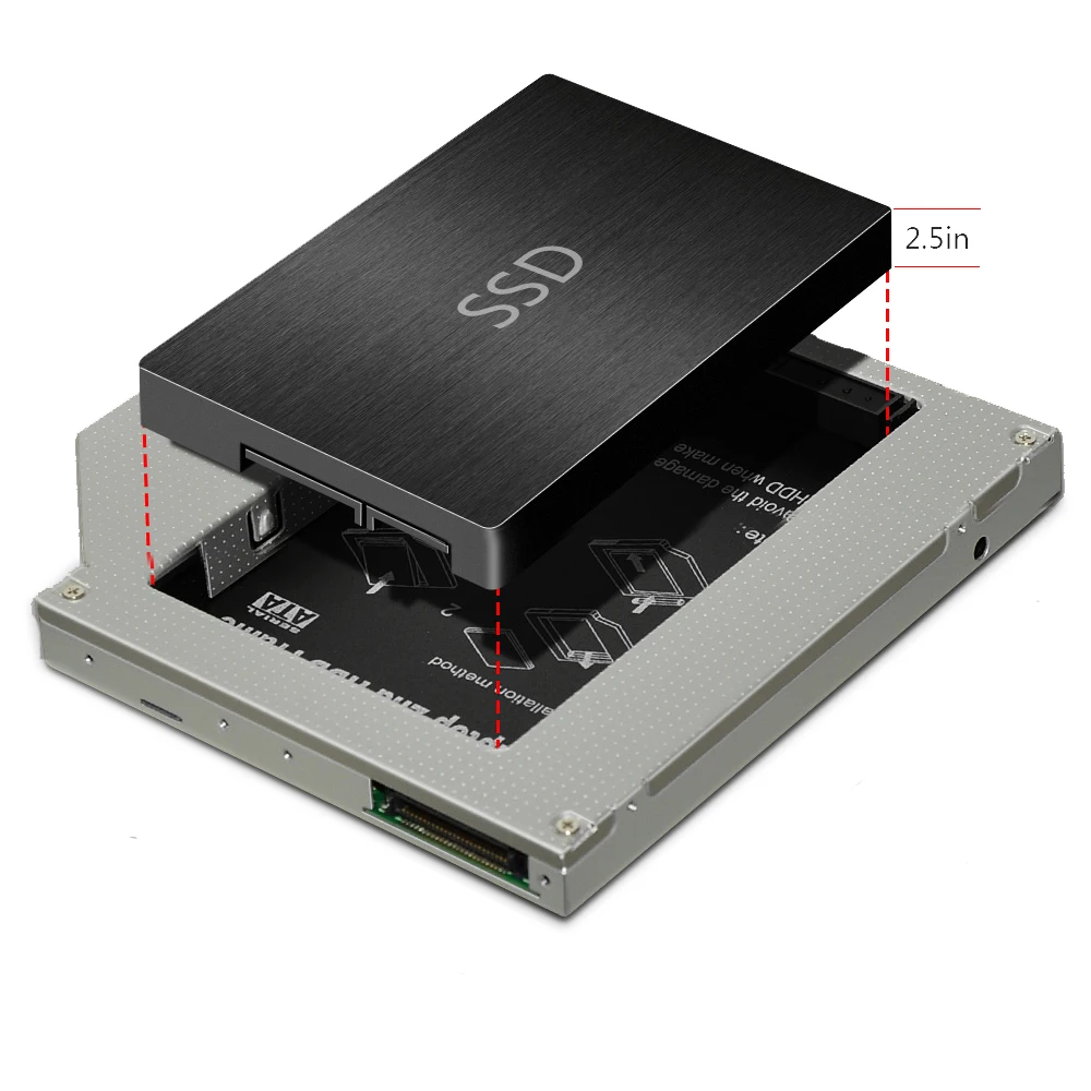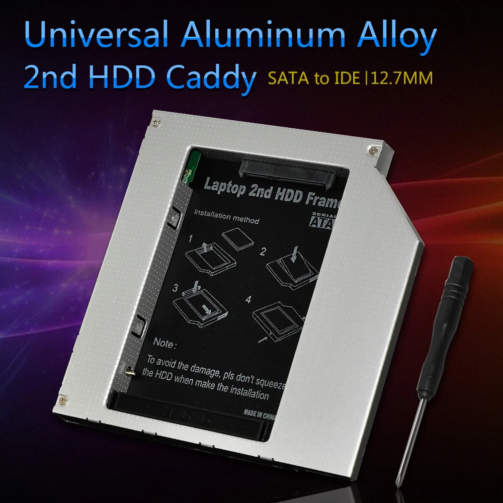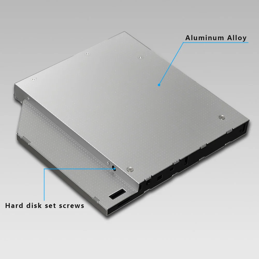Универсальный переходник для второго жесткого диска Sunvalley из алюминиевого сплава, 12,7 мм, IDE-SATA, 2,5 дюйма, чехол для жесткого диска SSD, DVDCD-ROM, Оптический отсек для ноутбука