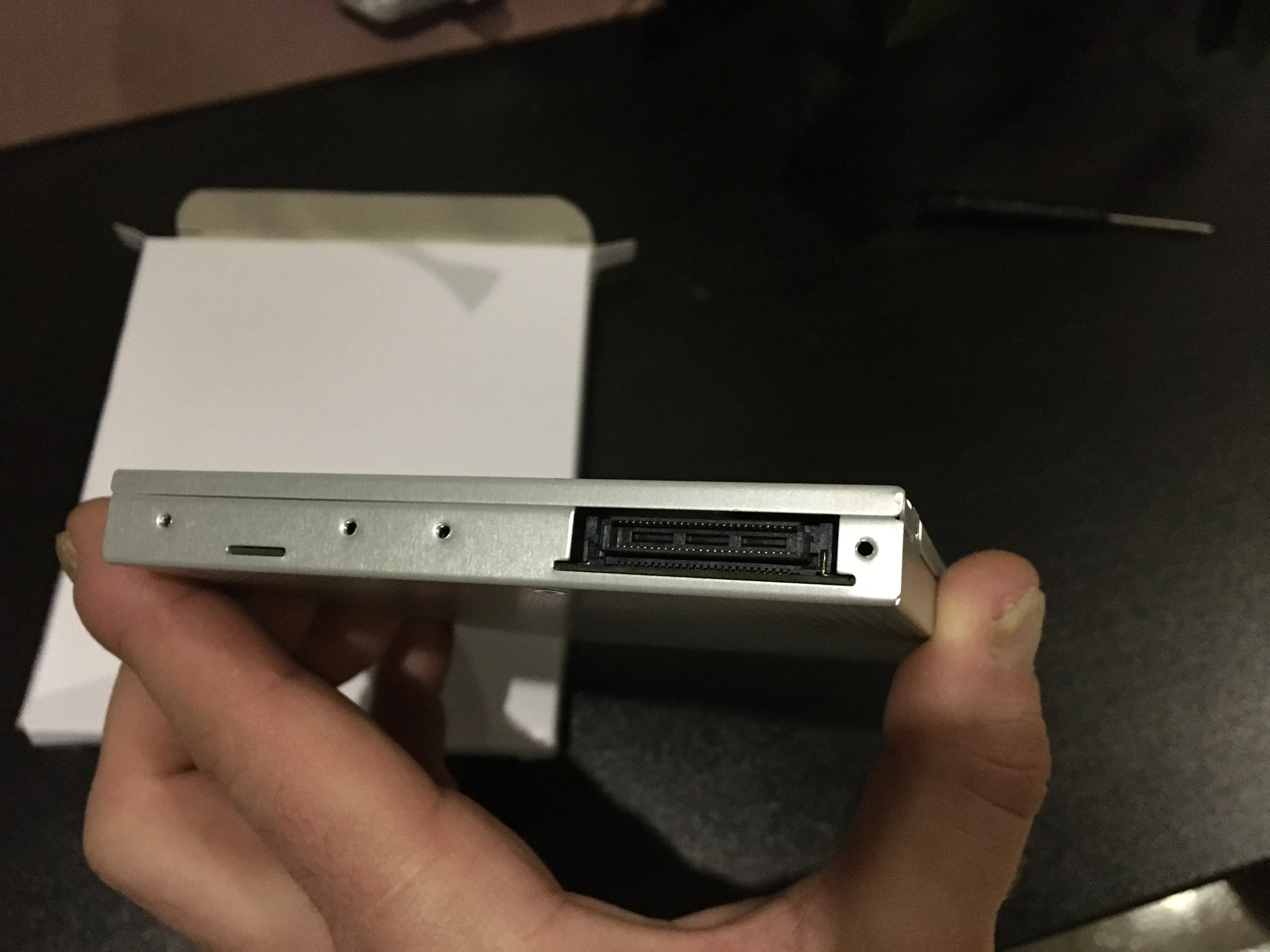 Товар доставили за 20 дней. Без проблем установил на место сгоревшего DVD привода. SSD тоже определился в системе без проблем.