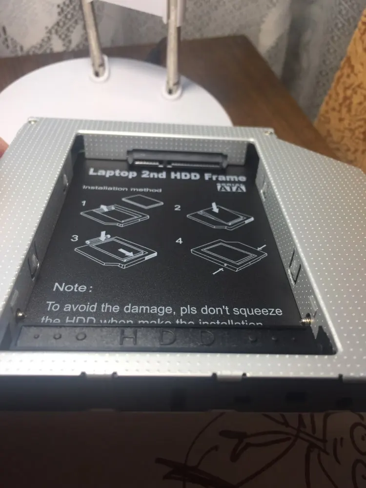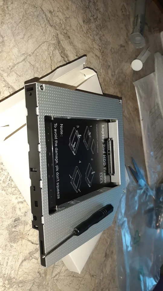 Решил обновить своего старичка ноутбук Toshiba satellite l300-14x, купил ssd диск для системы, и встал вопрос о дополнительной памяти, было принято решение купить адаптер. Адаптер под жёсткий диск пришел быстро, внешних дефектов, вмятин и царапин не было, в комплекте лежала маленькая отвёртка. На ноутбук Toshiba satellite l300-14x встал как родной, пластиковая накладка с DVD привода защелкнулась плотно и без люфтов. Вставил в него родной жёсткий диск от ноутбука на 160 Гб, все завелись и работает
