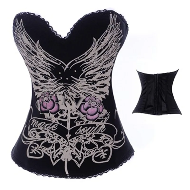 Бурлесковый корсет с косточками, топ, крылья и розы, печатный готич...