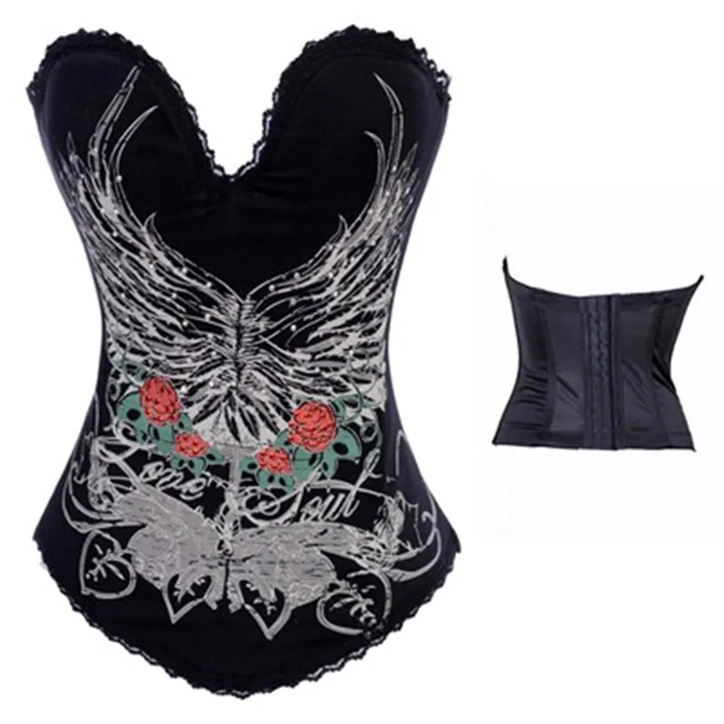 Фото продуктаЖенский Многоцветный сексуальный кружевной корсет с узором Татуировка готический, панк-рок Крюк с косточками бюстье 6 PatterN
