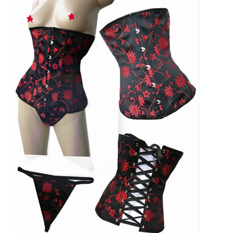 Винтаж пикантные черный, красный тугой корсет со шнуровкой вышивка корсеты и бюстье Body Shaper пояс белье Корсет Бюстье Для женщин