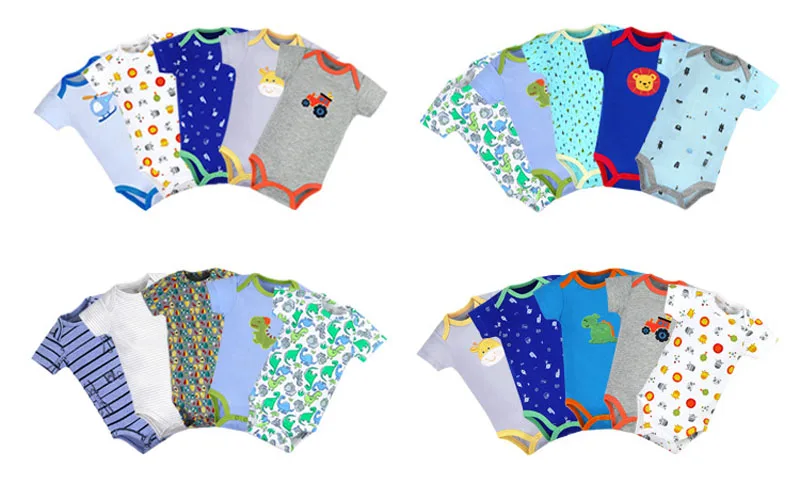 Комбинезон хлопковый с коротким рукавом, 3-24 м, 5 шт.