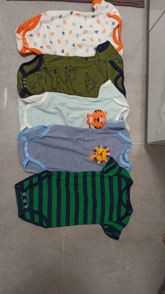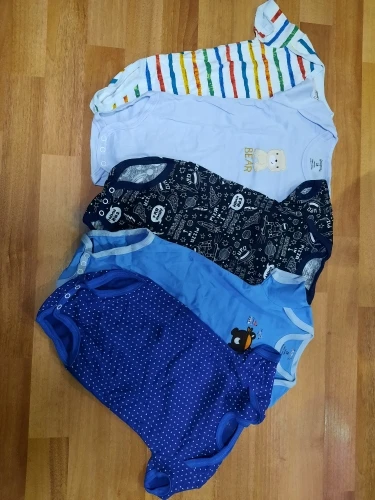 Бодиками довольна. Материал хлопок, хорошие расцветки, зАпаха нет. Прошито хорошо, все кнопочки на месте. Заказала сразу несколько вариантов и размеров. В упаковке 5 штук, поэтому цена порадовала. Продавец отправляет сам расцветку. В общем к покупке рекомендую.