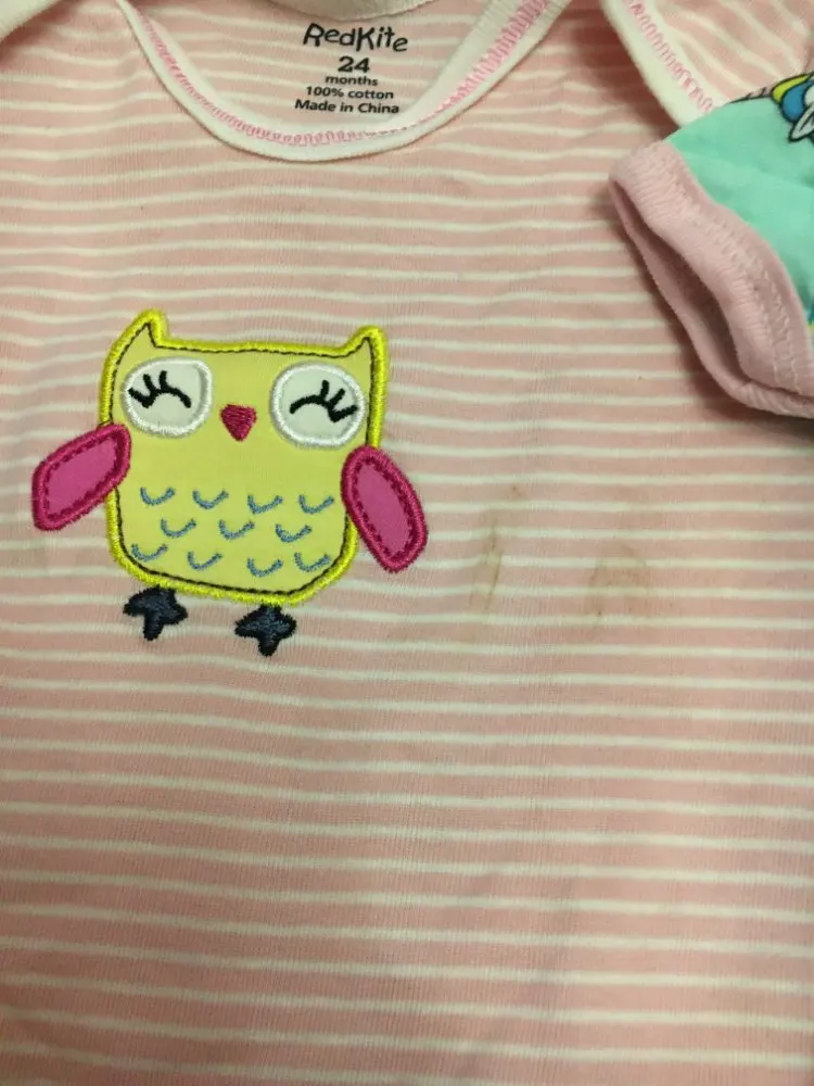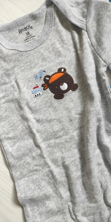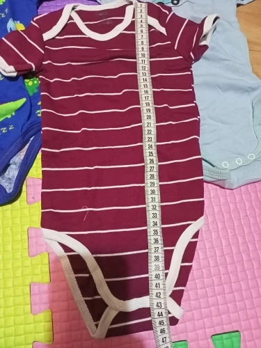 Моему ребенку 12 месяцев, я запросил 18, он немного большой, но все в порядке. Мне нравится качество хлопка, милые цвета, сейчас я стираю его, чтобы увидеть фиксацию цвета.
