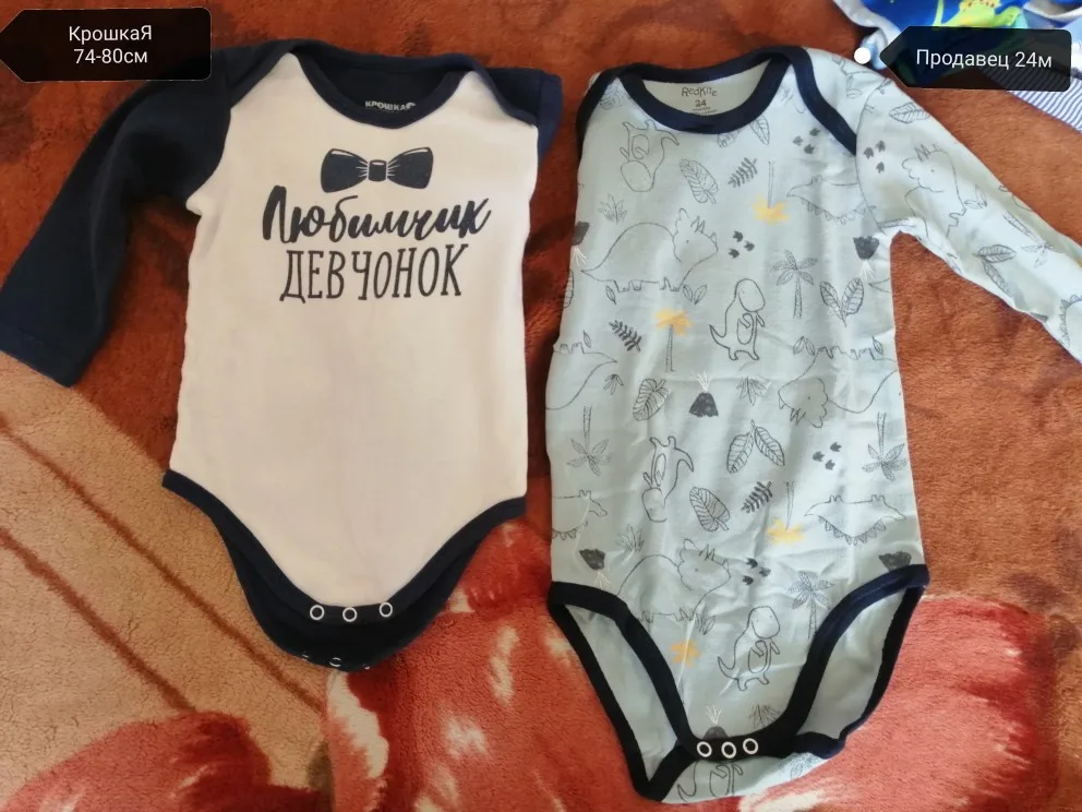 классные, но маломерки. на фото боди 18 месяцев и для сравнения 80 размер российский из детского мира. расцветки симпатичные пришли быстро объединённые с другими посылками Спасибо продавцу за качественный товар и быструю доставку