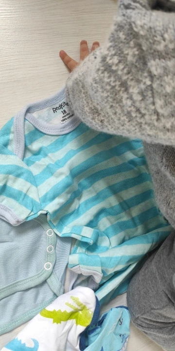 Заказывали 15.02.21, забрали 11.03.21 в Тульской области. Заказывали сразу с длинным и коротким руковом на вырост. Носим сейчас 80см одежду, заказали на 24м, боялись ещё вдруг маломерки будут. Товар запакован по 5шт в плотный пакет с кнопкой. Каждый боди завернут на картонную полоску и склеен 2мя полосками скотча. Ткань мягкая, лёгкая, дышащая и очень приятная. Без запахов. Подборка от продавца просто бомба!!! Все ооочень понравилось! На лето и дома сомое то! Выкладываю сравнение с крошкаЯ 80 и что пришло+фото с метром. Качество супер! Из 10 боди только на одном торчала ниточка, просто срезали, а ещё на одном ткань в подмышки будто чуть поползла, но если не растягивать не видно, все остально идеально. На каждом боди внутри этикетка. Посылка отслеживалась, с продавцом не общались. Рекомендую.