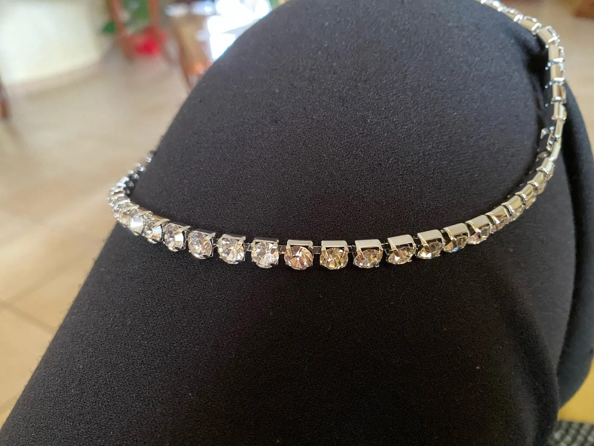 Bonsoir je suis vraiment désolée de vous dire que j'ai reçu le collier cassé et il manque un strass dommage car il était pas mal mais bon c'est clair que la qualité n'y était pas....!