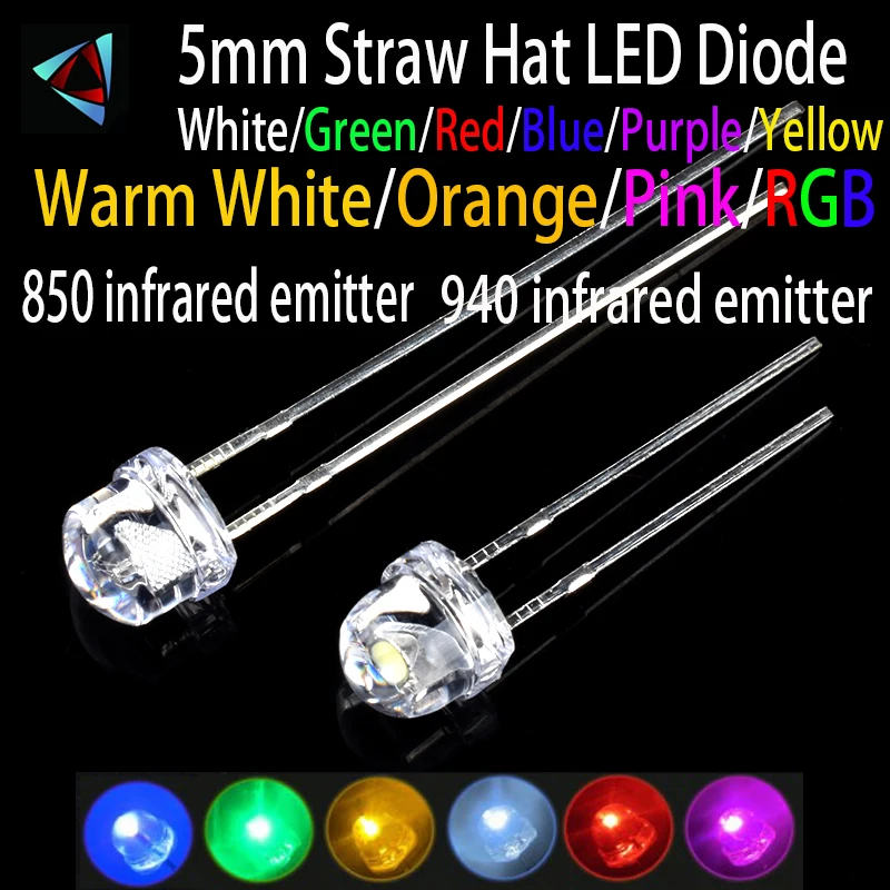 50 шт., 5 мм, 4,8 мм, соломенная шляпа, прозрачная, теплая, белая, зеленая, красная, синяя, фиолетовая, желтая, оранжевая, розовая, RGB, светильник й сам, освещение