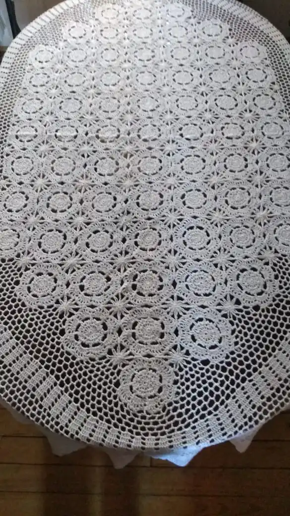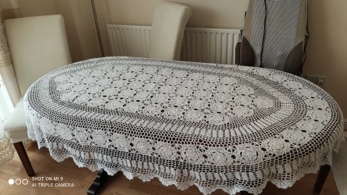 Скатерть имеет сильный запах, но думаю после стирки все пройдёт. реальная вязка на фото. скатерть приходит не стираная и не крахмаленная, так что вы должны уметь делать это самостоятельно. отправлено было в простом бумажном пакете, так что мне ОЧЕНЬ повезло, что не пострадало в пути. пришло в течение месяца, даже меньше