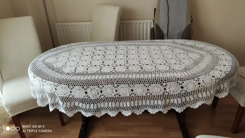 Овальная вязаная кружевная скатерть, хлопковая овальная скатерть ручной работы, удлиненная скатерть для стола