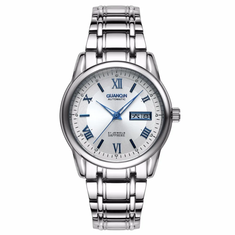 Часы наручные GUANQIN Мужские механические, роскошные брендовые модные водонепроницаемые светящиеся полностью стальные, с сапфировым стеклом