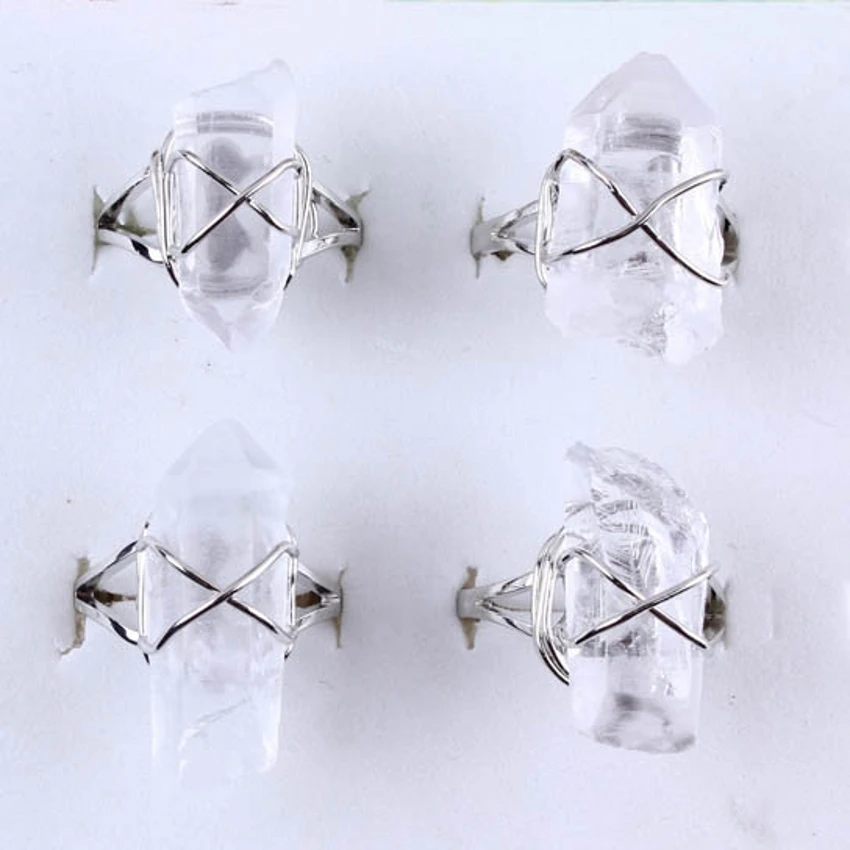100-уникальное посеребренное проволочное кольцо неправильной формы с кристаллом горного хрусталя, кольцо с изменяемым размером на палец, ювелирные изделия, 1 шт.