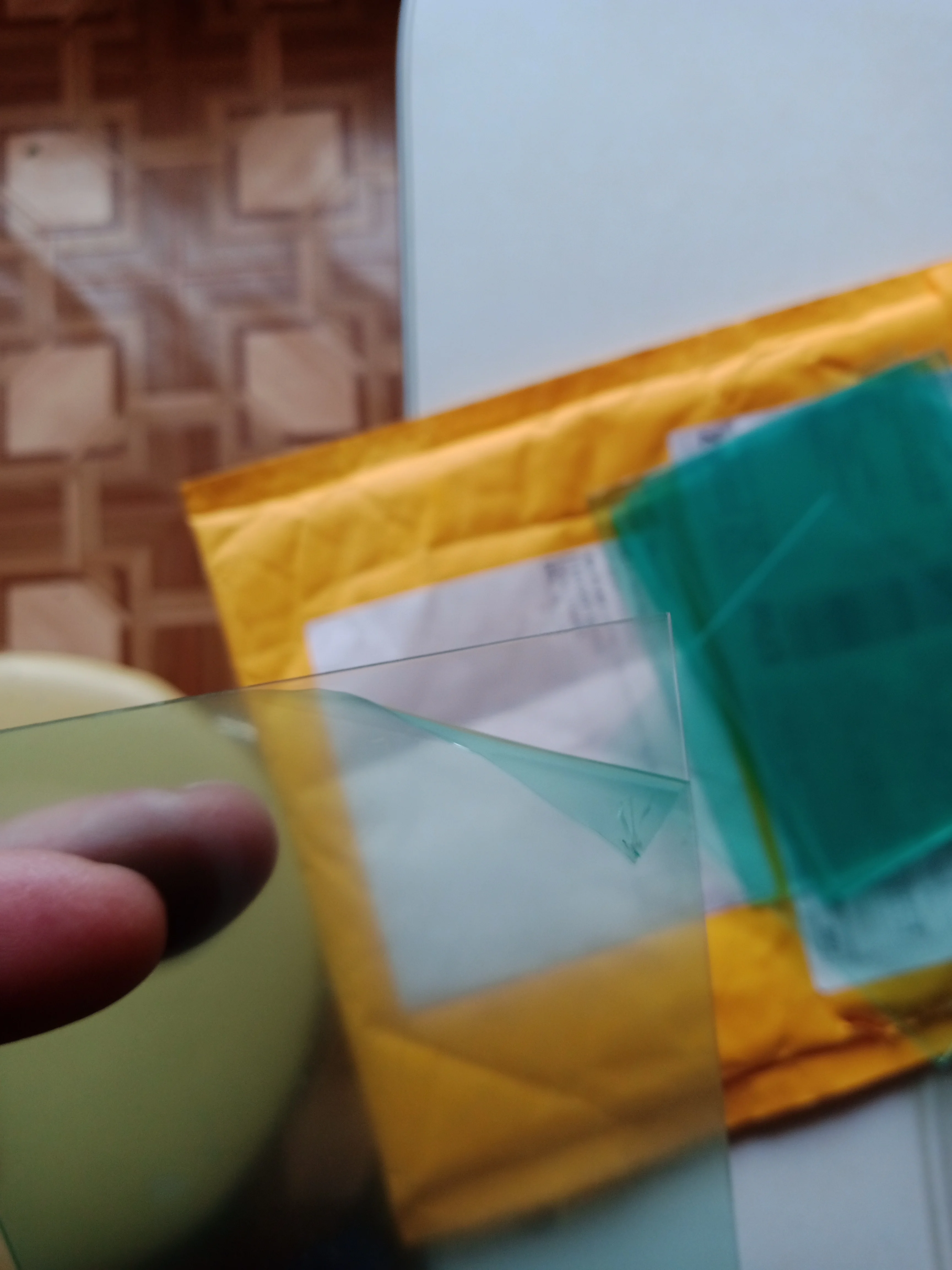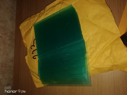 Стекло ( пленка) хорошего качества, толщина примерно 1 мм. с двух сторон защитная плёнка. По размеру соответствует родной только угол нужно закруглить. Внутренних получается 2 штуки. Режится легко ножом и потом надламывается. Доставка быстрая. Продавца рекомендую