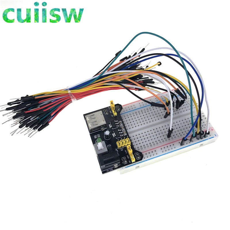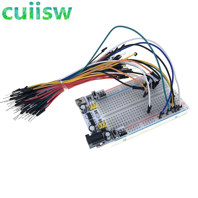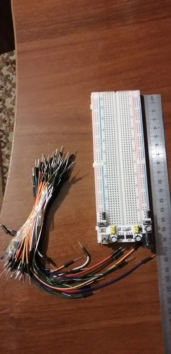 Макетка полностью оправдала ожидания. Достаточно большая и удобная снизу есть двусторонний скотч, при необходимости приклеить, проводов даже больше чем в описании где то 65. На плате стоят удобные переключатели 3.3в и 5в на каждую сторону можно выбрать нужное напряжение. Итого покупкой доволен как слон, теперь буду делать свои поделки не на колене и с кучей висящих проводов, а как белый человек, на столе и со всеми удобствами. :)