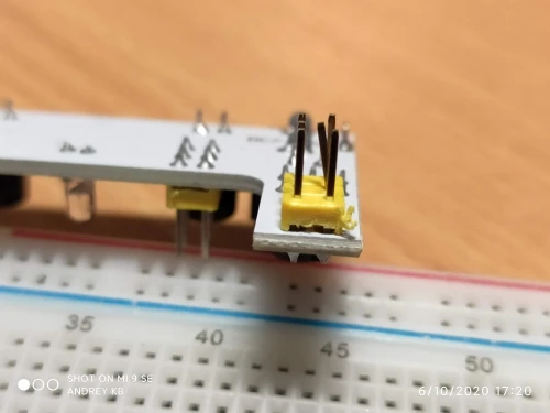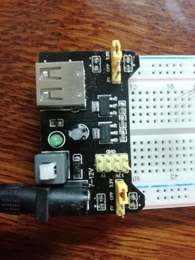 Выводы на плате питание, что встовляются в макетку по цвету не совпадают, при подключении можно землю и питание попутать.