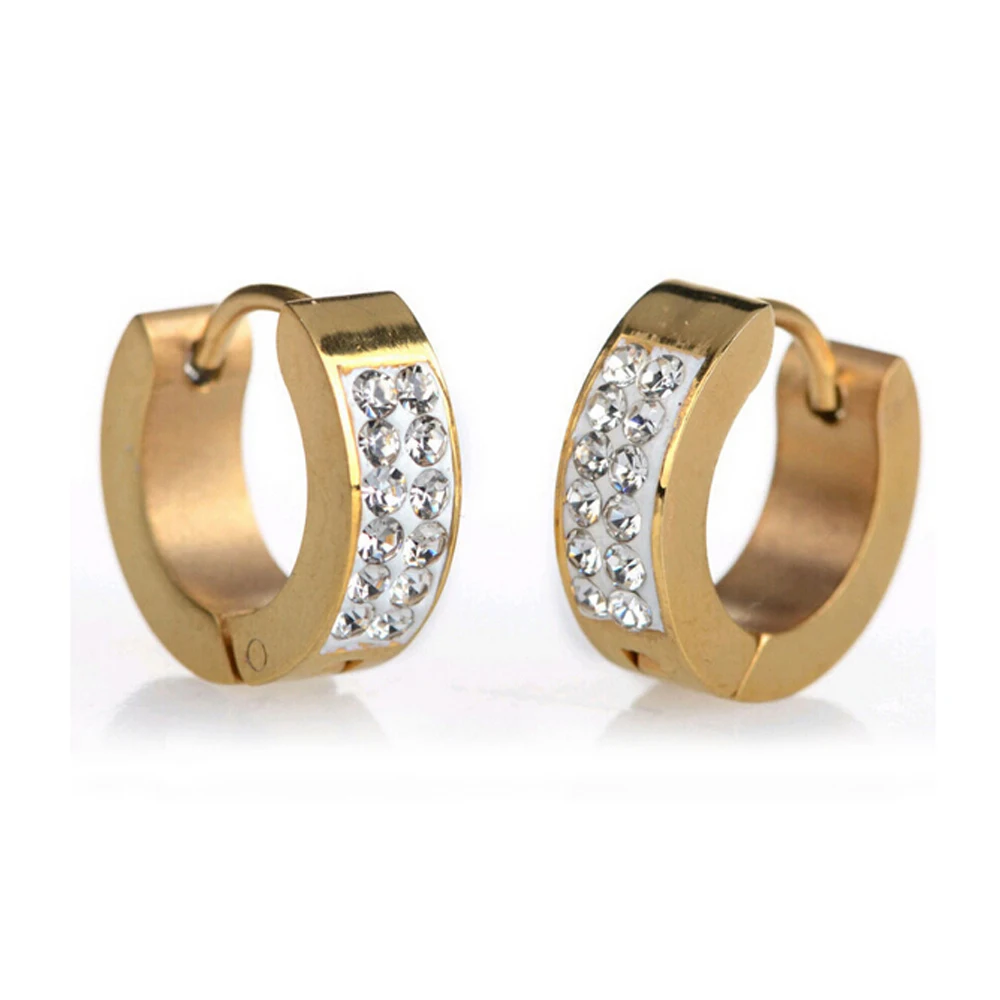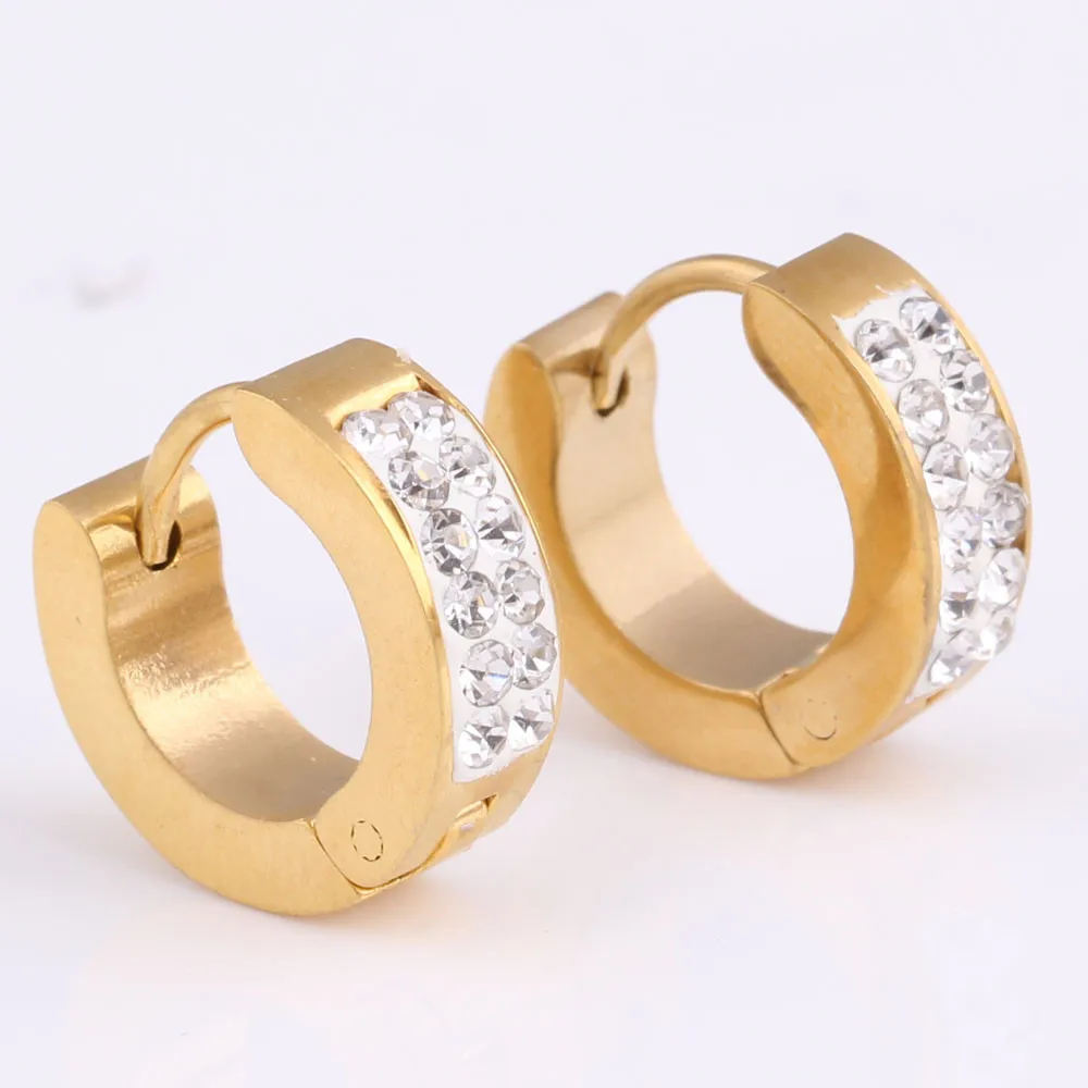 Женские серьги-кольца из нержавеющей стали, три цвета, модные серьги с кристаллами
