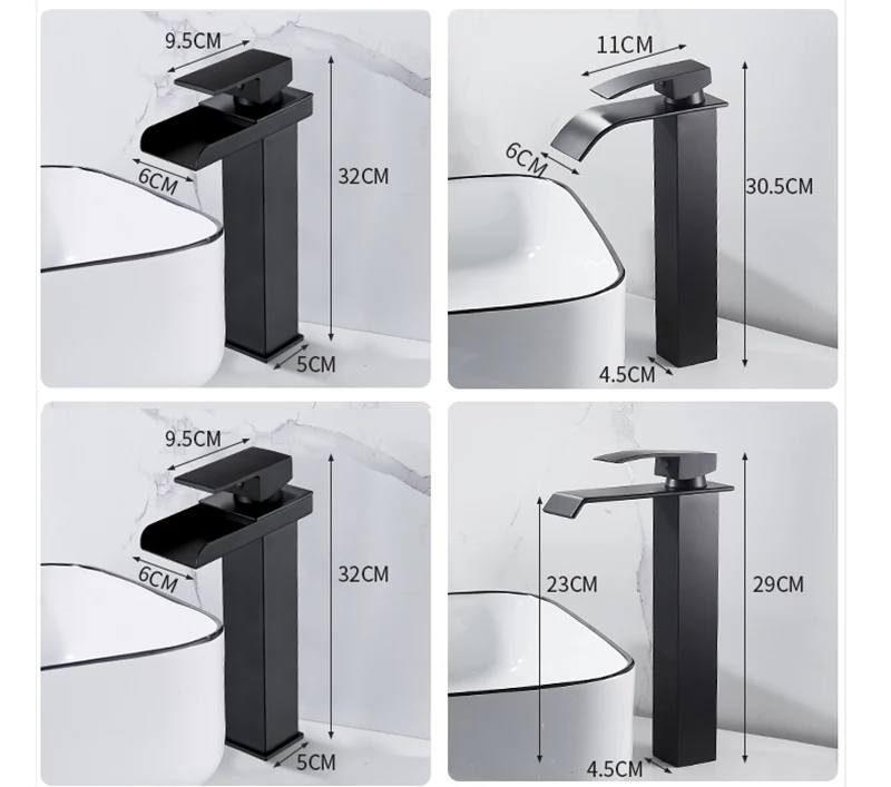Квадратный хромированный и черный смеситель водопад для раковины Смеситель для ванной кран с широким носиком Смеситель для раковины кран для горячей и холодной воды