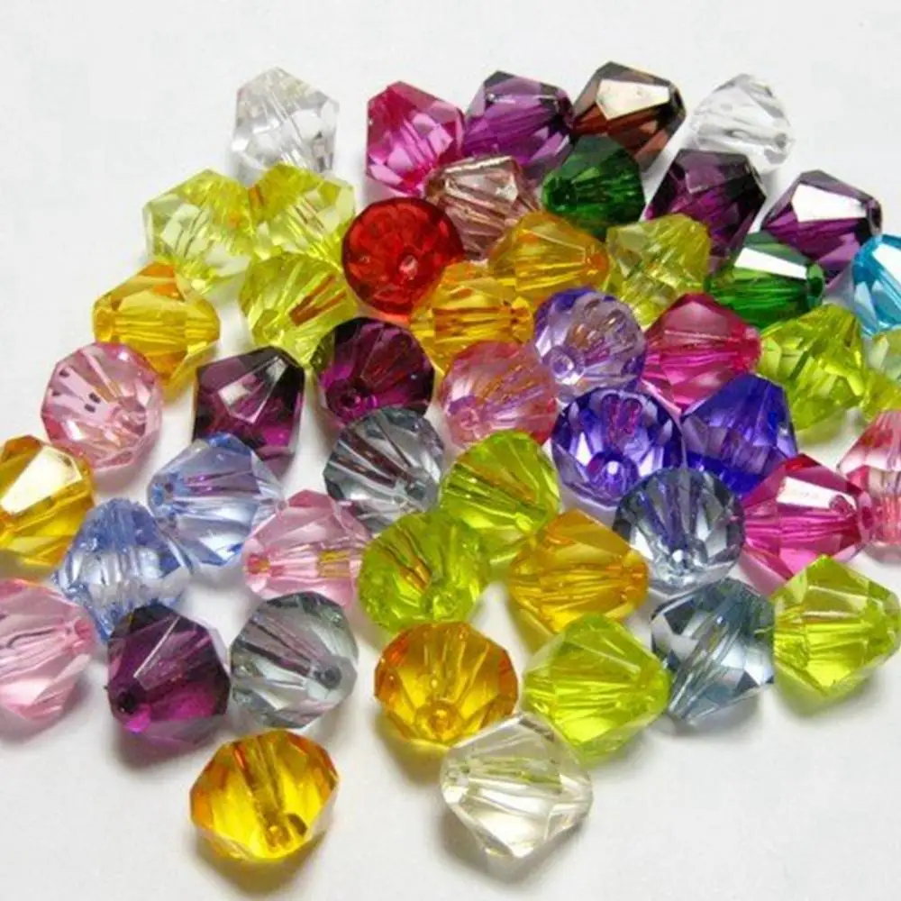 50 разноцветных прозрачных акриловых граненых биконовых бусин 14 мм