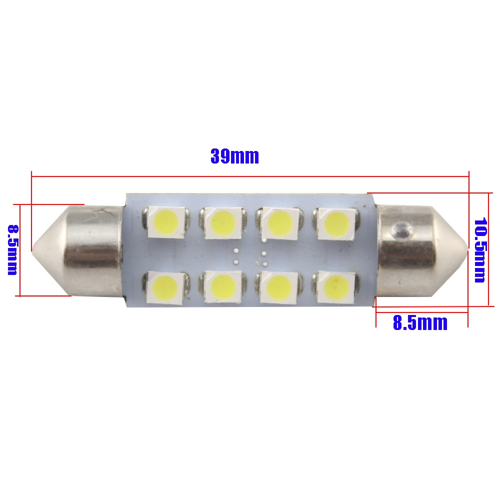 * Светодиодный тип и количество: 1210 8SMD * Угол луча: 180 градусов * Выход освещения: 32 люменов * Рабочее напряжение: 12 В постоянного тока * Цветовая температура: 8000K * Срок службы: 20000 рабочих часов * Стандарты и сертификаты: CE/ROHS > Применение транспортного средства: светильник карты/купольный светильник/светильник багажника/бардачок/туалетный светильник/светильник футвелла внутренний купольный светильник s/светильник номерного знака/инструментальный кластерный светильник/боковой габаритный светильник и т. д. Посылка включает в себя: 20 шт C5W 1210 8SMD гирлянда лампы