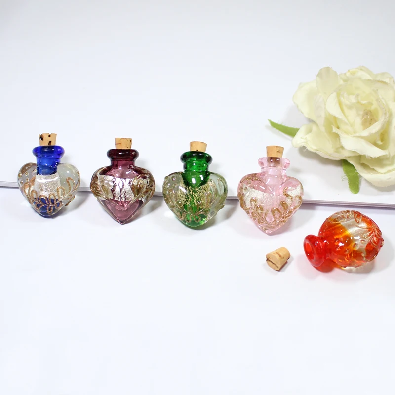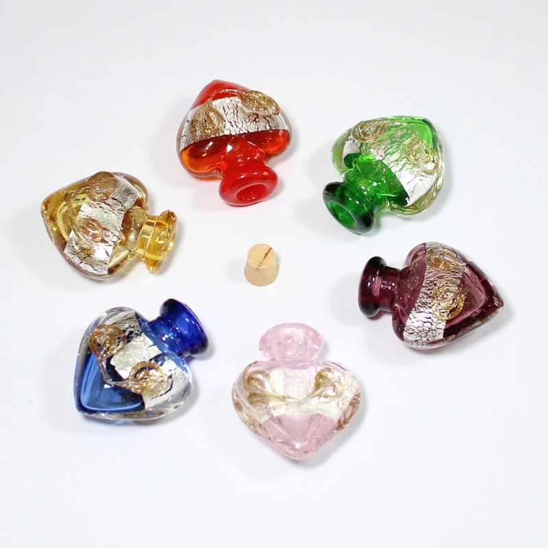 3 шт муранские стеклянные флаконы для эфирных масел сердца (27x25мм, 0,25 мл), муранские стеклянные бутылки эфирного масла,