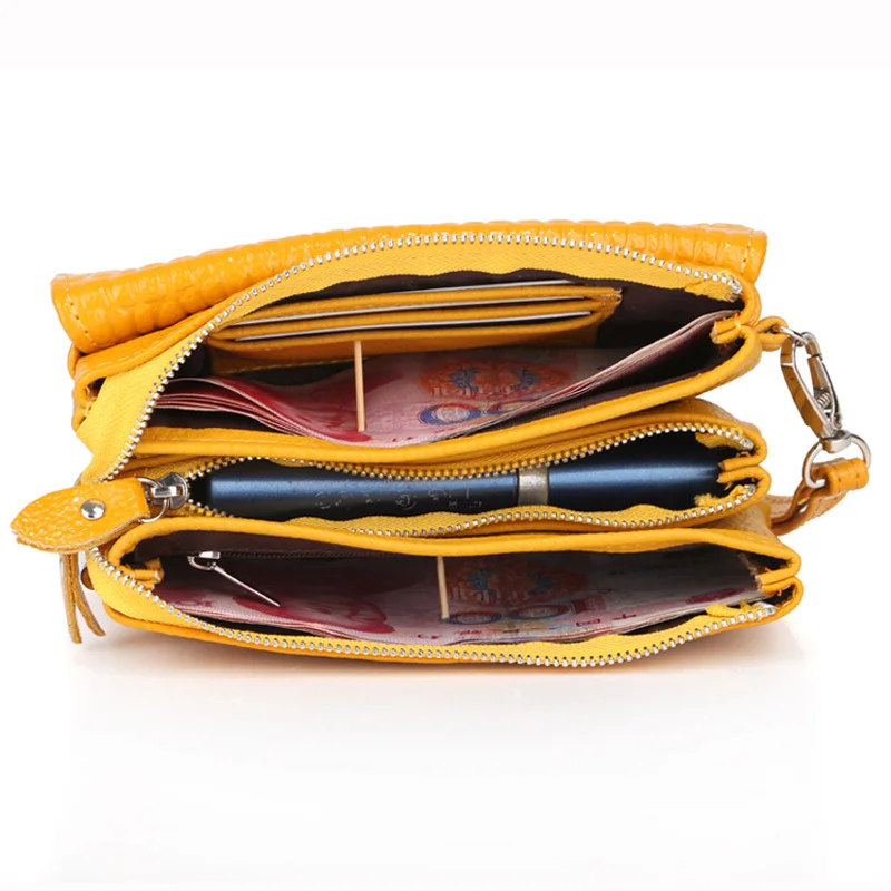 Вместительные Модные женские кошельки, длинные женские кошельки из натуральной кожи с ремешком на руку, клатч с двойной молнией, кошелек для монет, сумки-мессенджеры на плечо