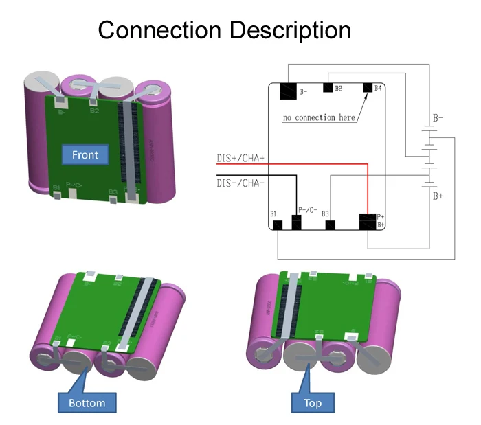 Наша компания имеет различные типы литий-ионных аккумуляторов, например, BMS, зарядное устройство,Держатель аккумулятора 18650, никелевый ремень, чехол для аккумулятора для электровелосипеда, если вам это нужно, можете заказать напрямую, спасибо.Бесплатная доставка, 14,8 V 4S 10A BMS/PCM/PCB, для 4S 3,7 V 18650 аккумулятор, рабочий ток 10A, система управления литий-ионным аккумулятором.