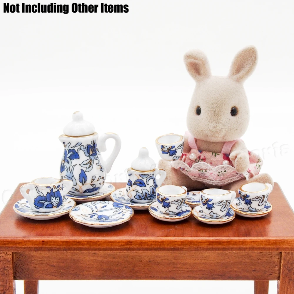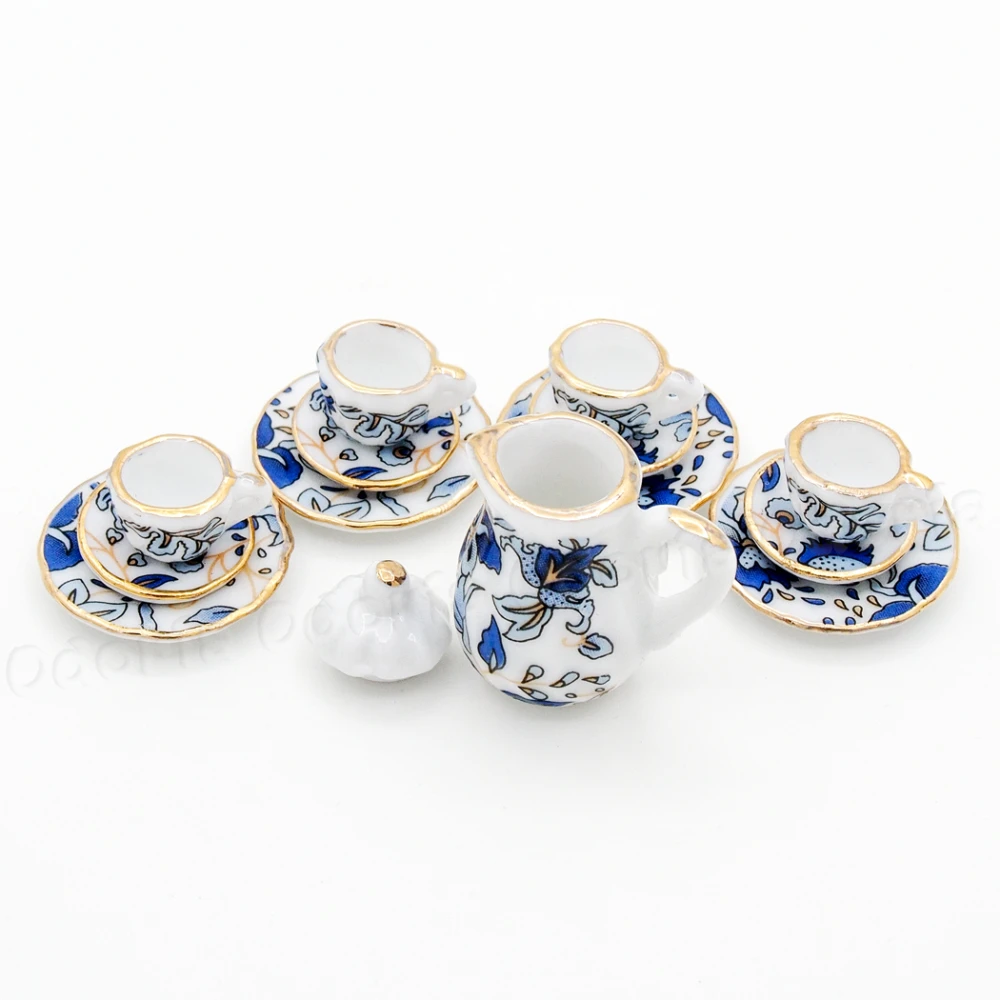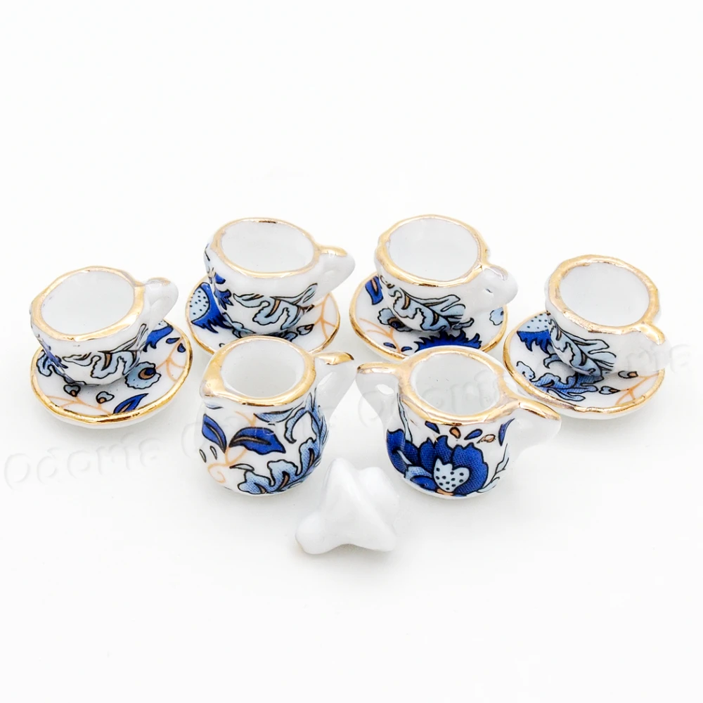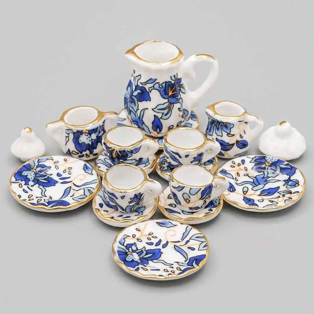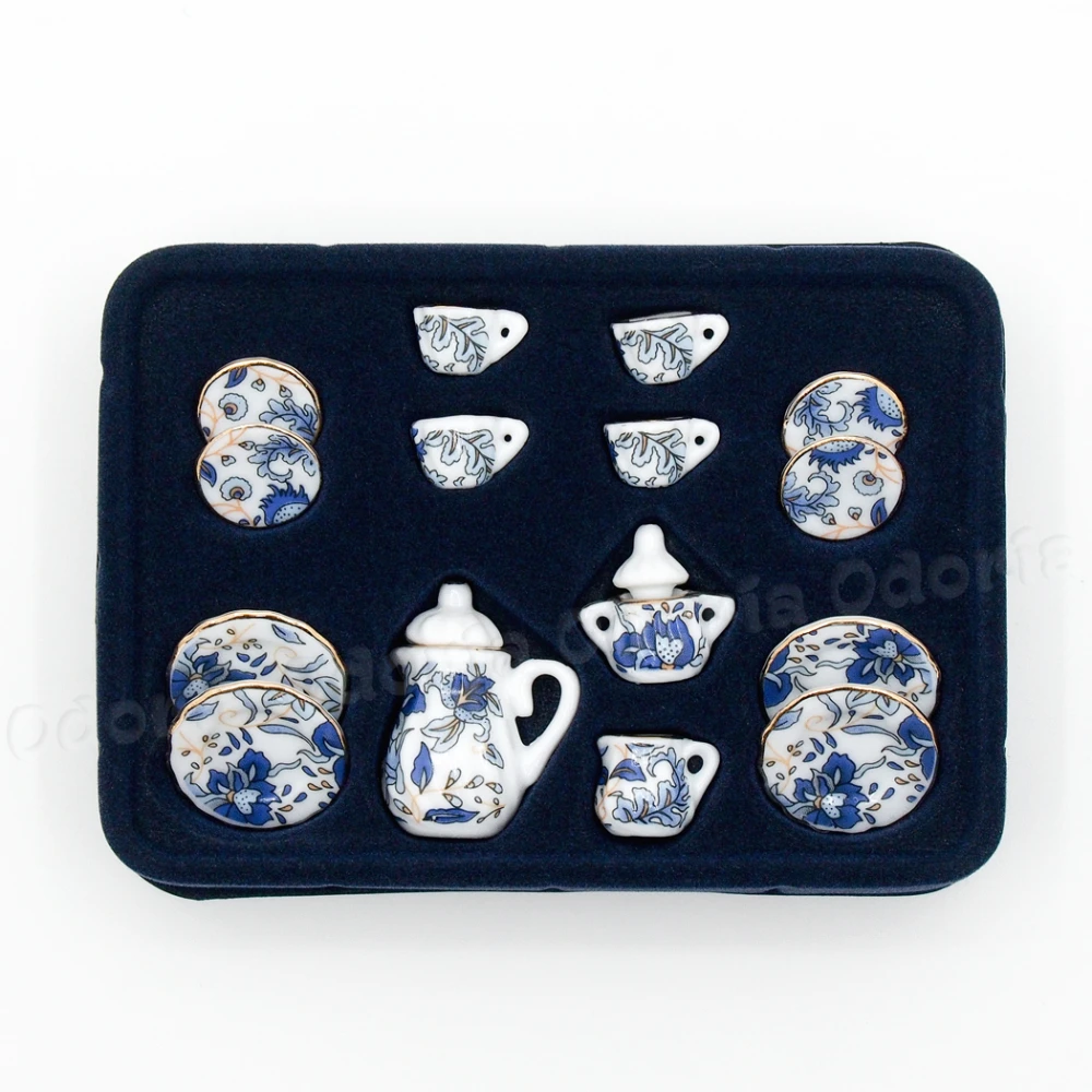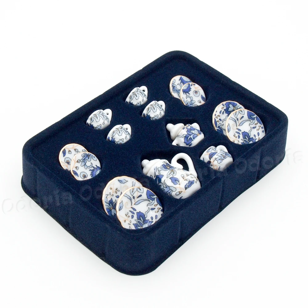 Набор керамических чайных чашек с голубыми цветами Odoria 1:12, 16 шт.