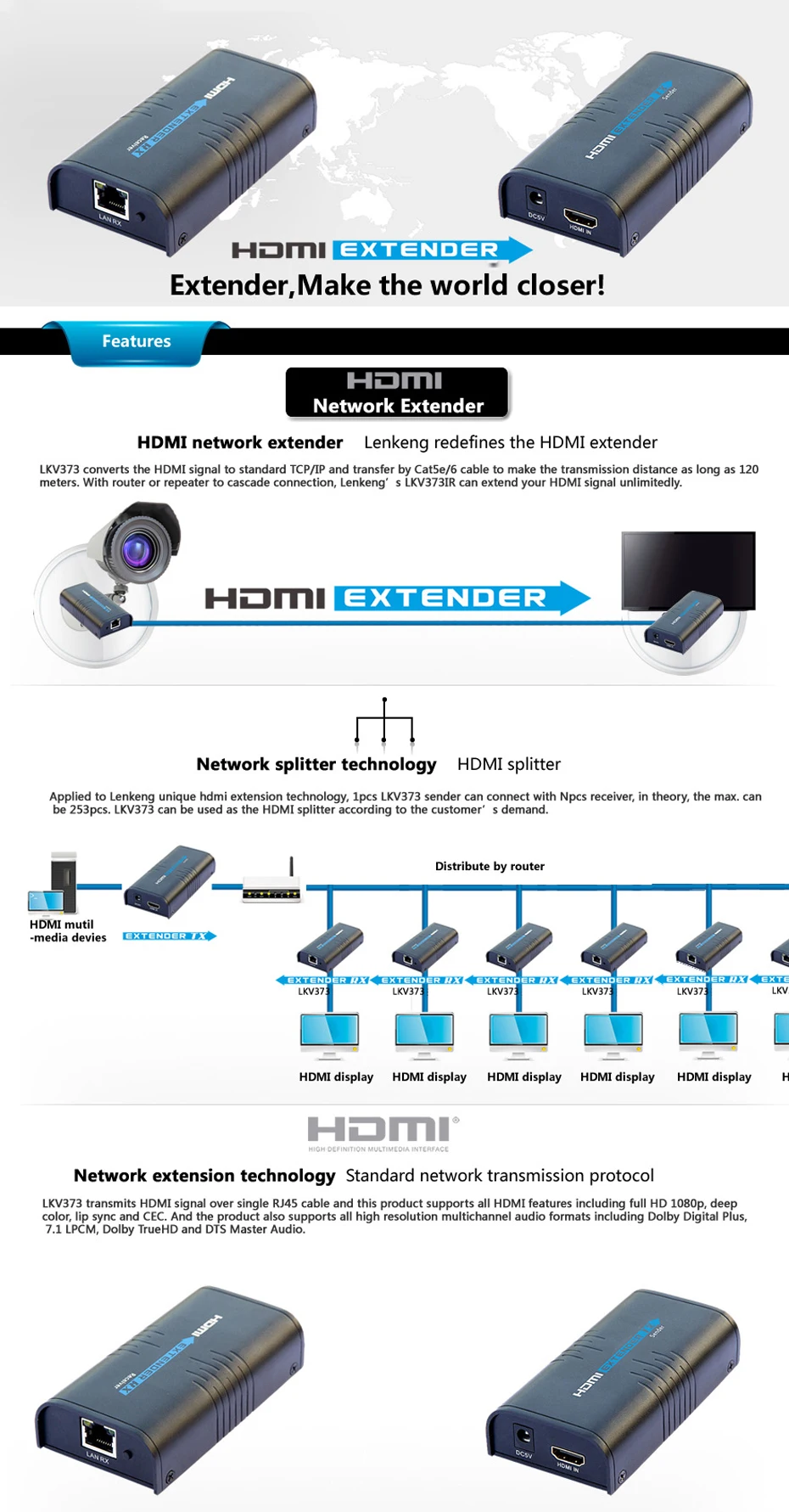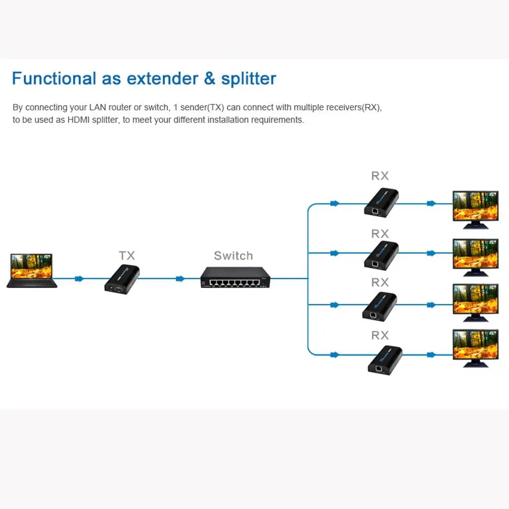 Оригинальный удлинитель LKV373 HDMI IP LKV373 V2.0 приемник передатчика до 120 м по кабелю cat5e6