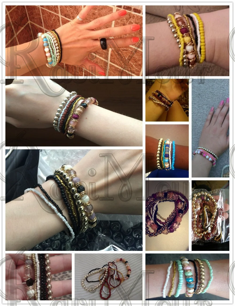 браслет из маленьких бусин при надевании сразу порвался, остальные в порядке
