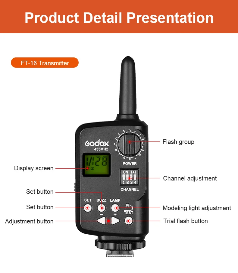 Беспроводной контроллер питания Godox FT-16 FT16, 16-канальный триггер для вспышки AD-180