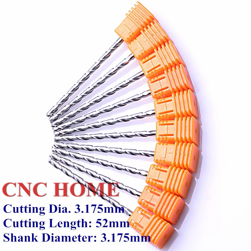 10 шт. 3,175*52 мм вольфрамовые карбиды 2 флейты спиральные концевые фрезы, фрезерный станок с ЧПУ
