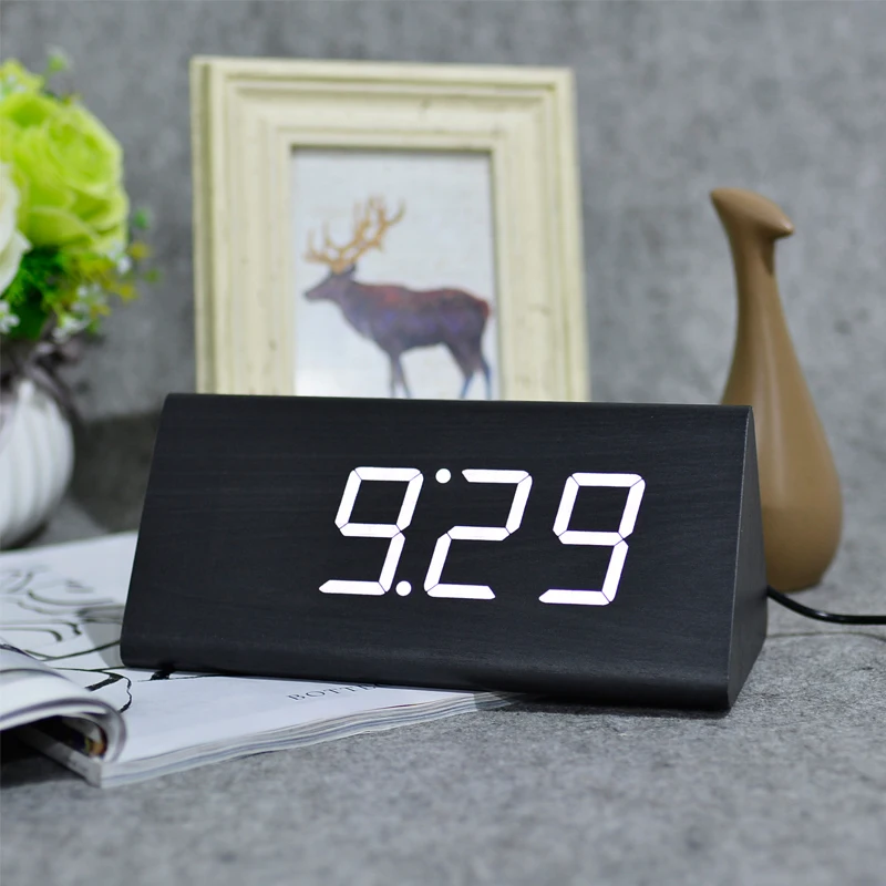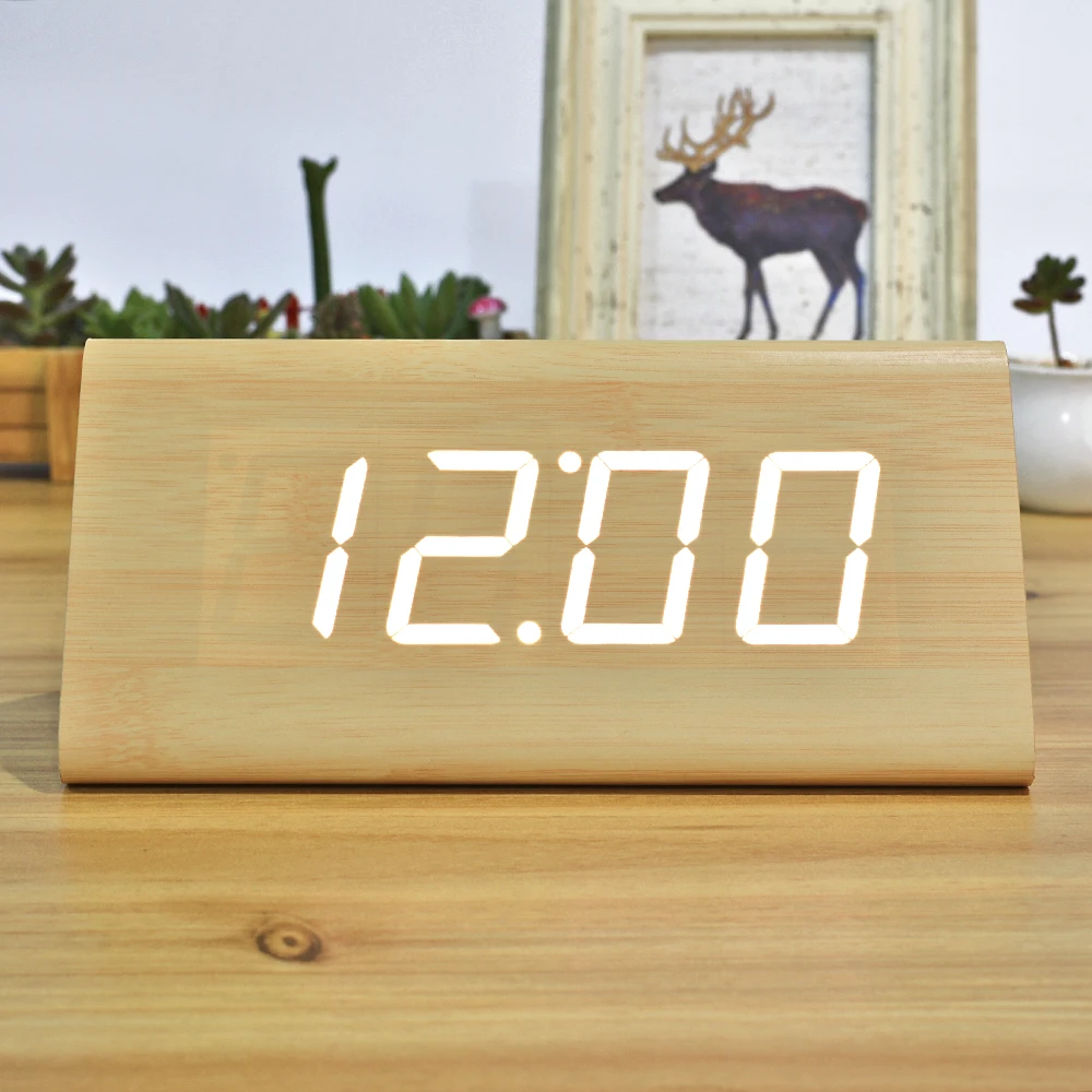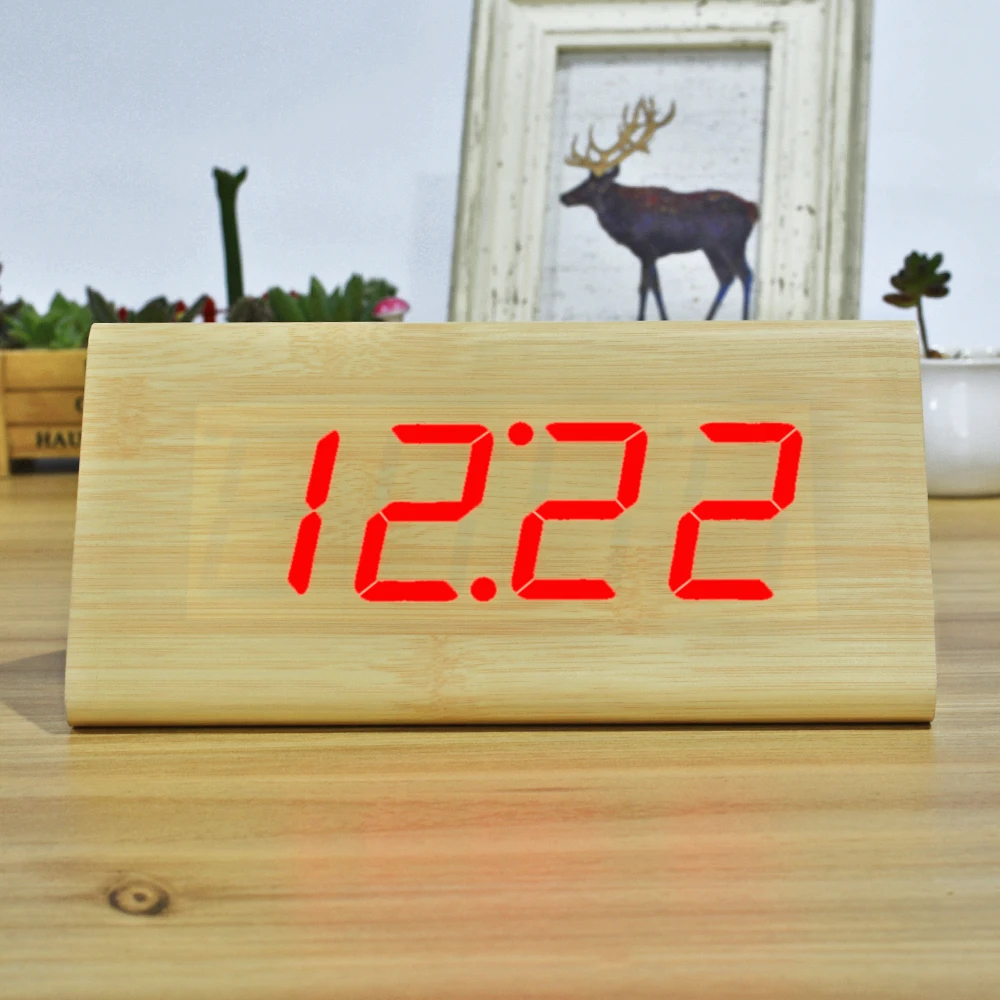 FiBiSonic новые современные деревянные часы, деревянные часы с уникальным дизайном-большие цифры, цифровой светодиодный дисплей, календарь, термометр, голосовой Настольный будильник