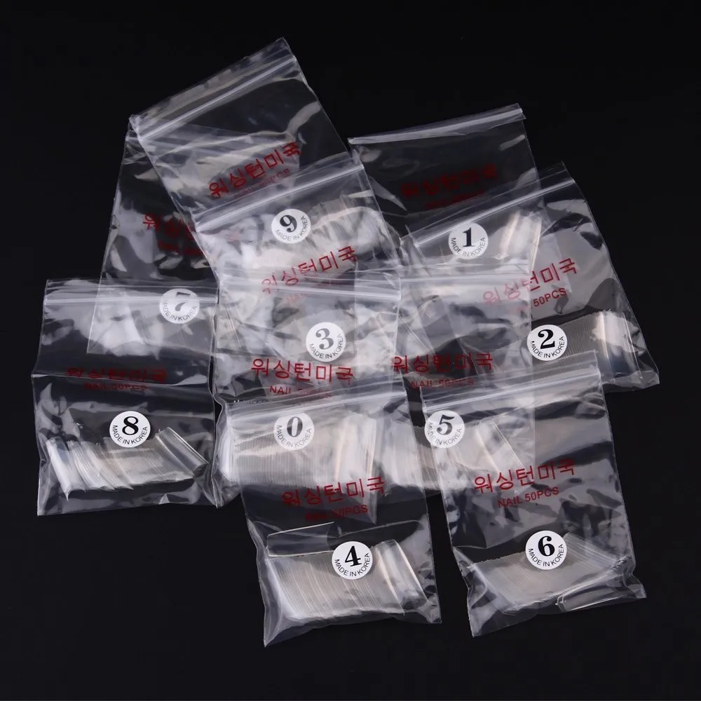 3.Разные размеры-500 штПрозрачные накладные ногти10 разных размеровС 50 ногтями каждого размера, подходящими для большинства пальцев, которые имеют индивидуальные номера 0-9, поэтому их легко отслеживать, И удобно выбирать подходящий размер, который подходит для каждого пальца.