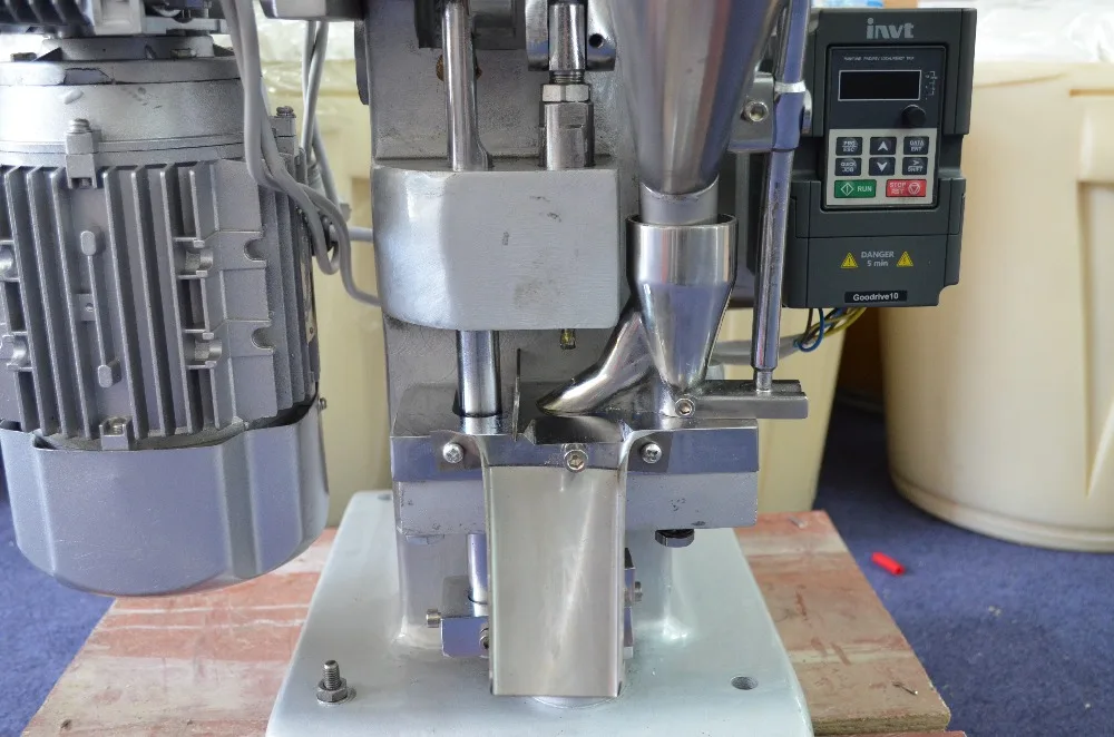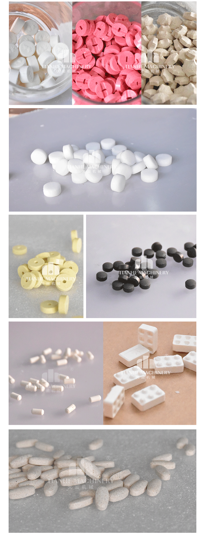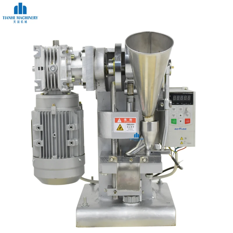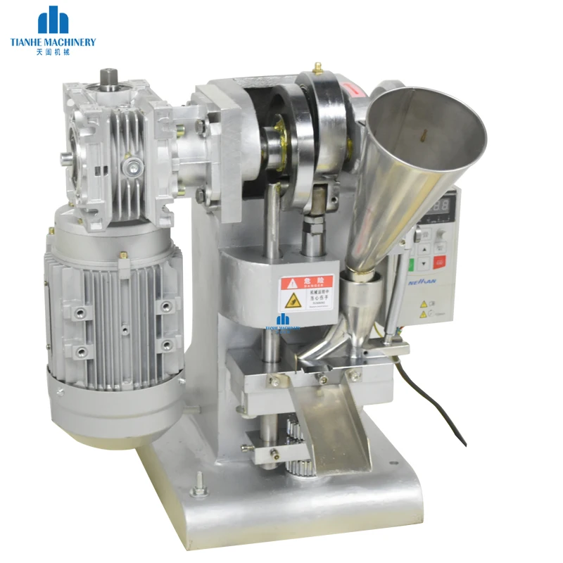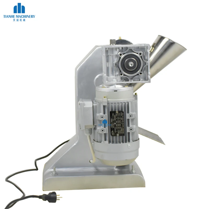 Эта машина используется для изготовления различных видов гранулированного сырья в круглые планшеты. Применяется для пробного производства в лабораторном или серийном производстве в небольшом количестве различных видов таблеток, сахарных кусочков, таблеток кальция и таблеток аномальной формы. Он оснащен небольшим настольным прессом для мотивов и непрерывного покрытия. Также может работать вручную. На этом прессе может быть установлена только одна пара штамповочных штампов. Глубина наполнения материала и толщина планшета регулируются.