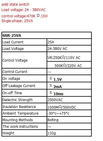 25VA SSR вход 470 K2 W нагрузка 24-380V напряжение регулятора однофазного твердотельного восстановления