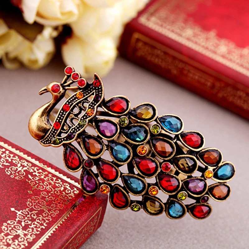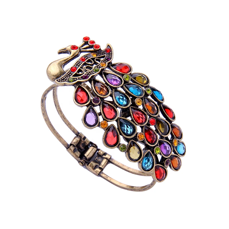 Женский Винтажный Браслет-манжета kissme, разноцветный браслет из сплава золотого цвета с камнями в форме капли воды и павлина, Ювелирное Украшение