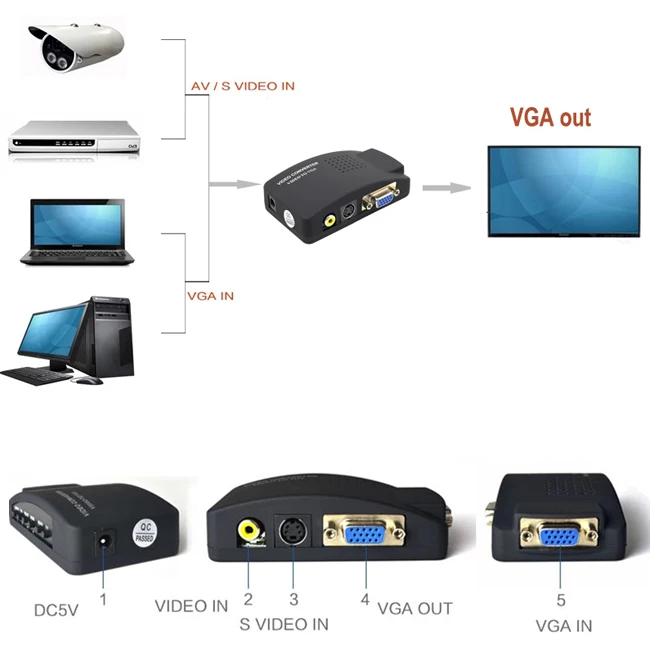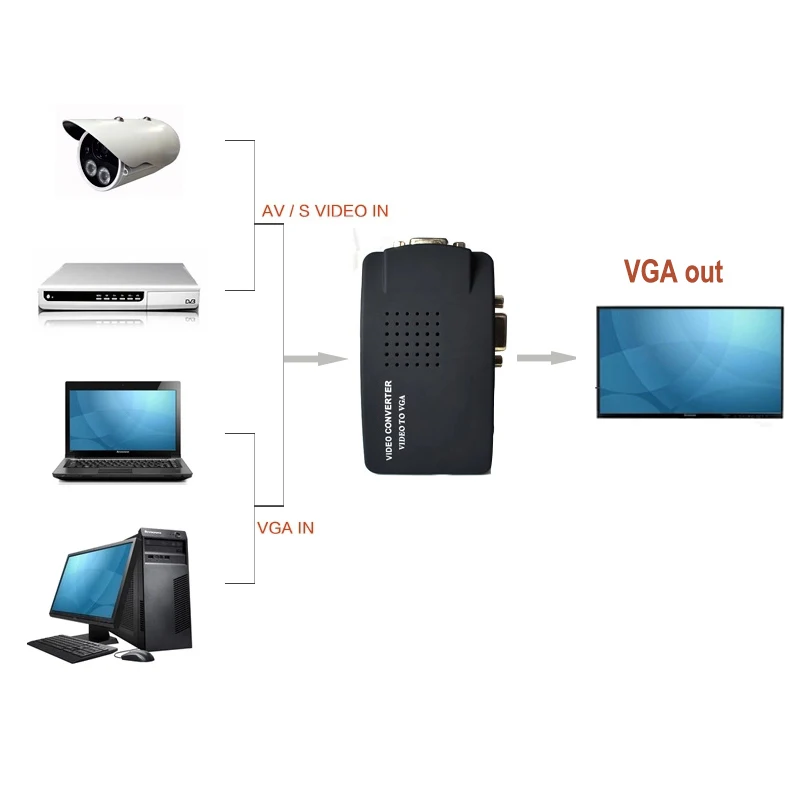 S-video Композитный RCA AV к VGA конвертер с USB источником питания для ТВ к ПК конвертер (VGA кабель не входит в комплект)