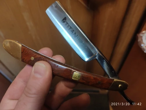 Замечательная бритва. Умеренно тяжелая, красивая. Лезвие не кривое, уже заточено. В комплекте шёл ремень и паста для правки. Доставка умеренная, курьер привёз до двери. Не верьте слухам — бритва хороша, особенно за свою цену