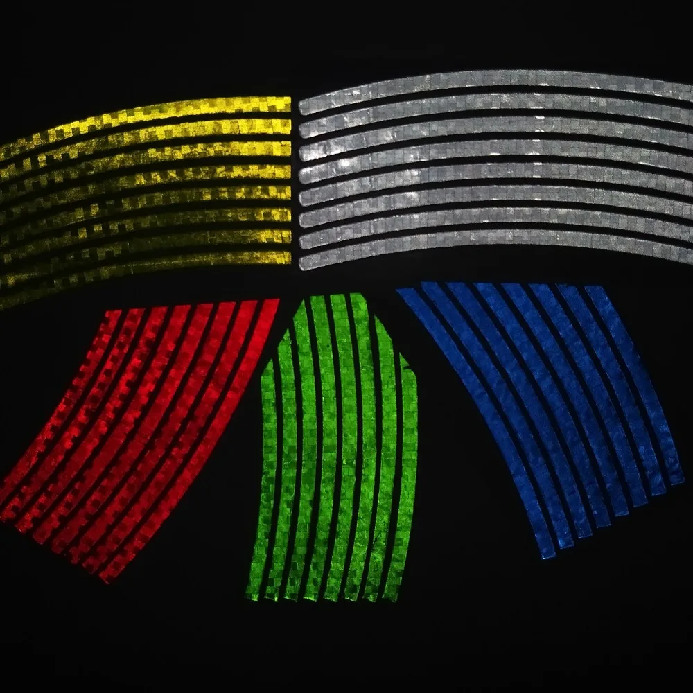 Светоотражающая велосипедная наклейка, наклейка для дисковых тормозов, колеса 26, 27, 28 Дюймов, 5 цветов, 1 лист (8 полосок)