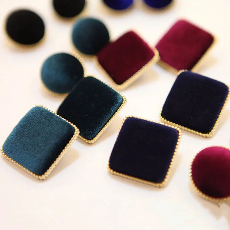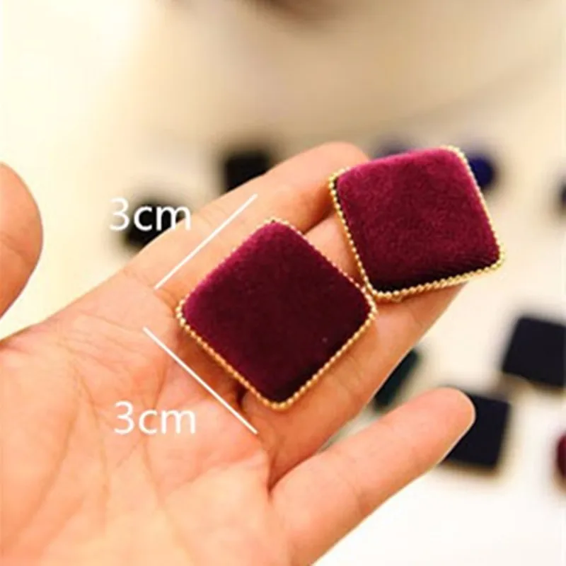 Короткие универсальные Квадратные золотые бархатные серьги-гвоздики из пряжи Женские винтажные серьги-гвоздики подарки на Новый год бесплатная доставка 0143