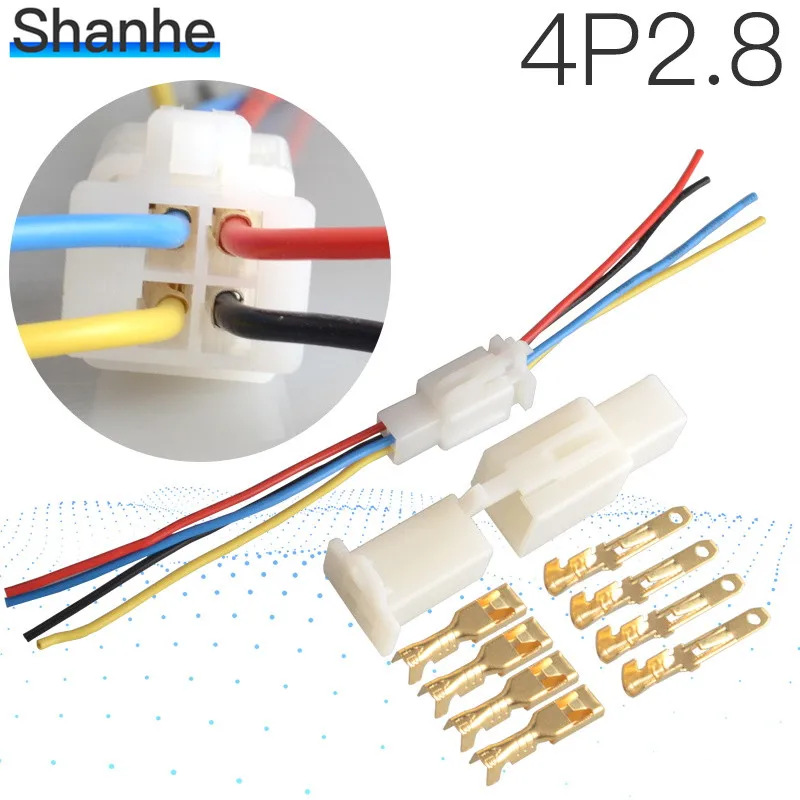Автомобильный разъем 2,8 мм, JST 2,8, проводной разъем, 4P, штекер, гнездо, кабельные зажимы, комплекты, мотоциклы, электровелосипеда, автомобиля