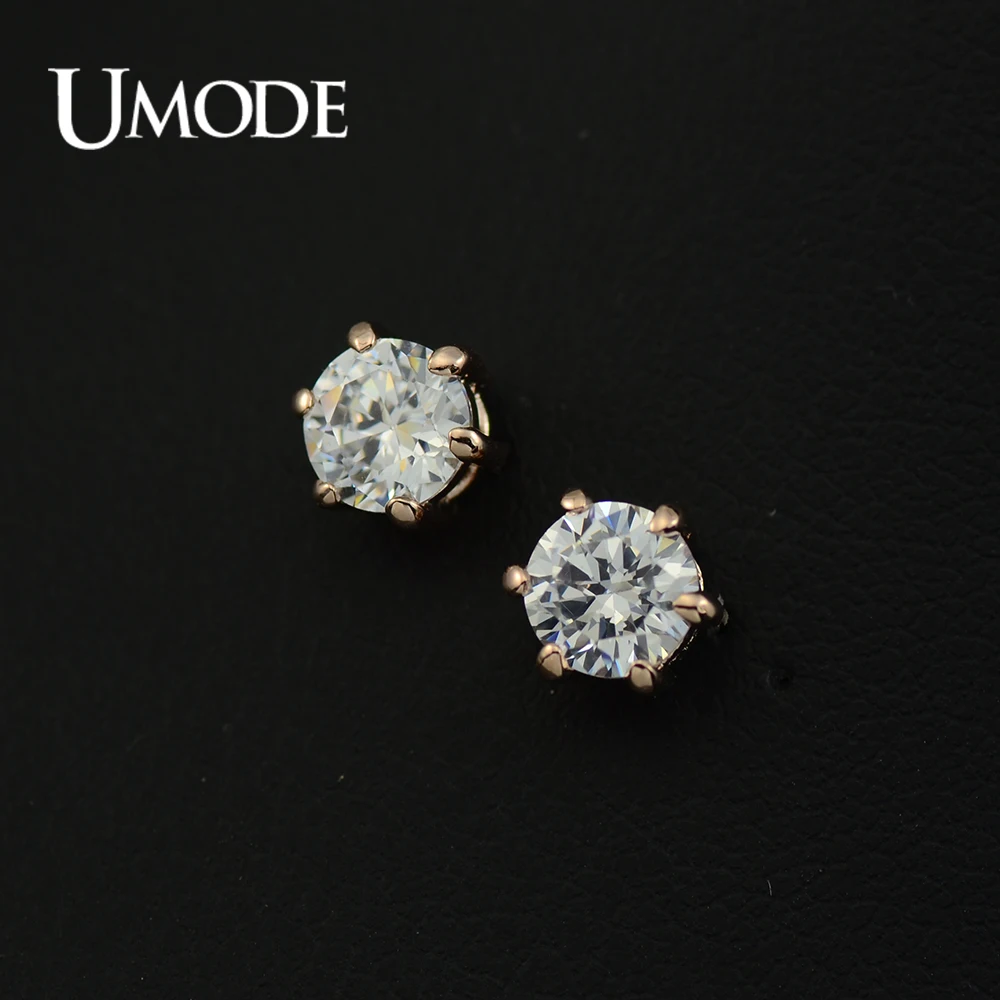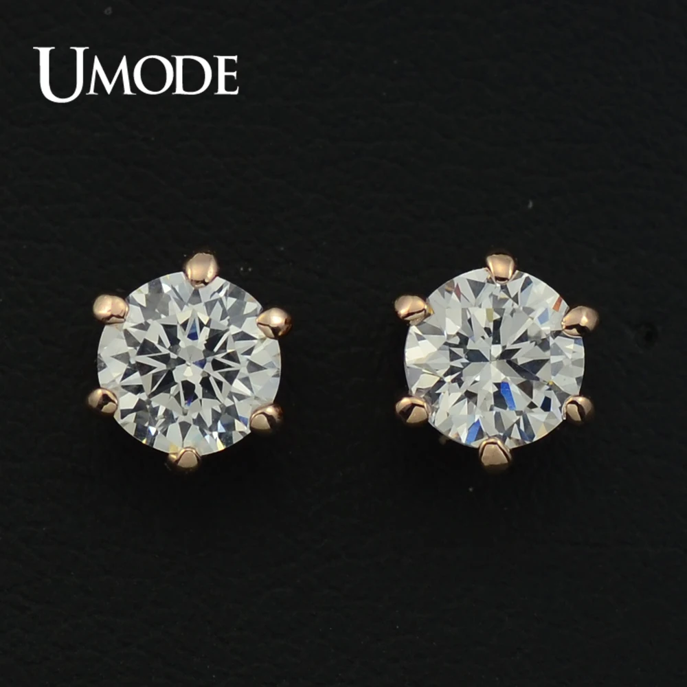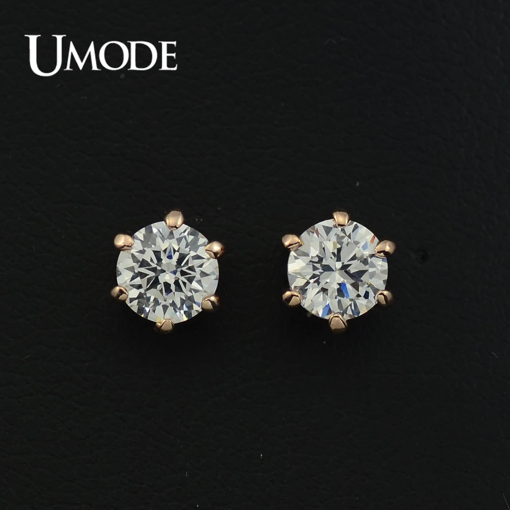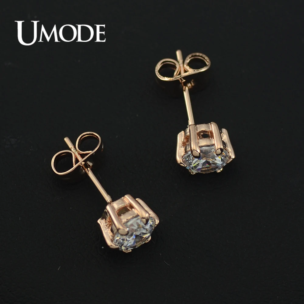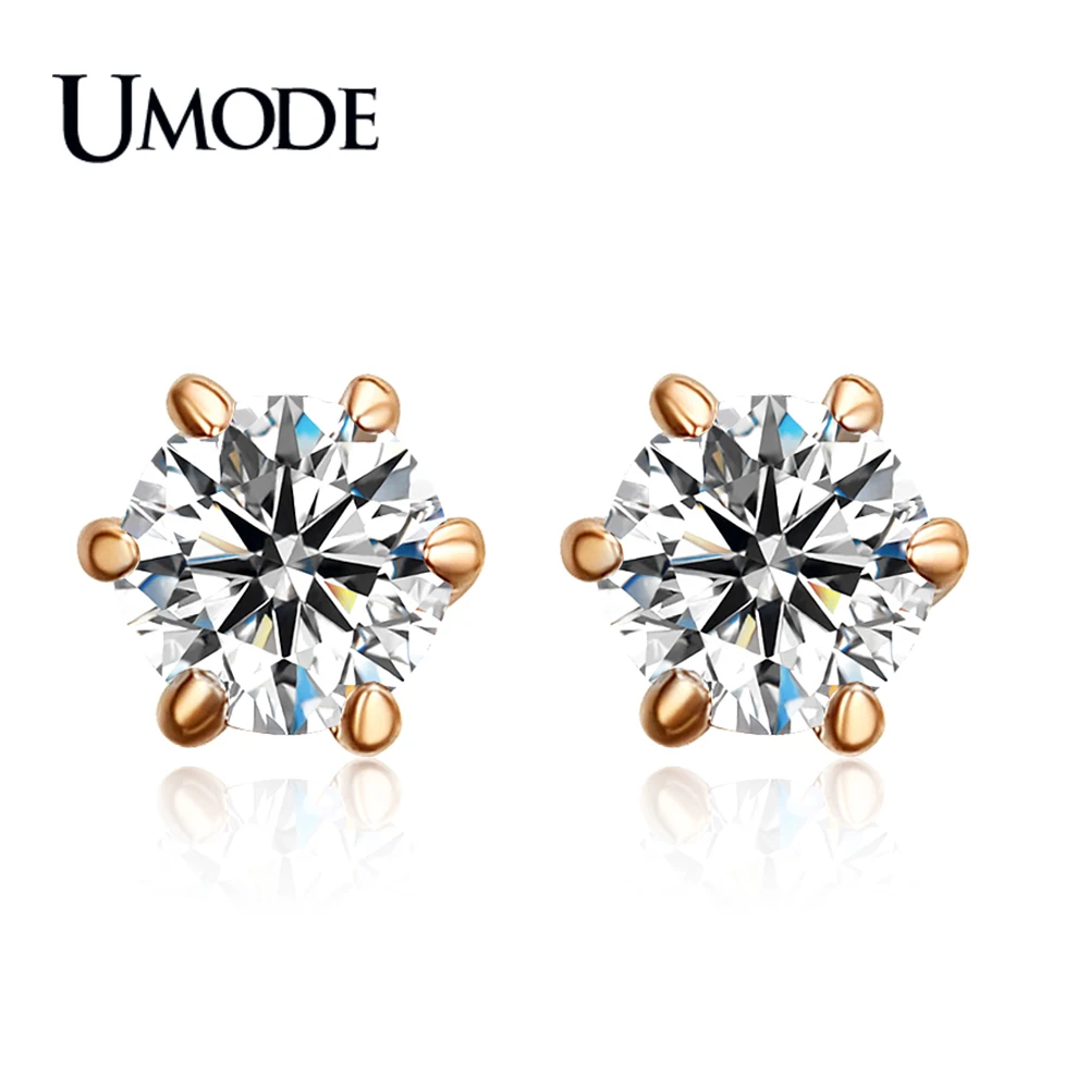 UMODE Серьги-гвоздики с покрытием из розового золота и 6 сияющими фианитами 0,5к JE0137A