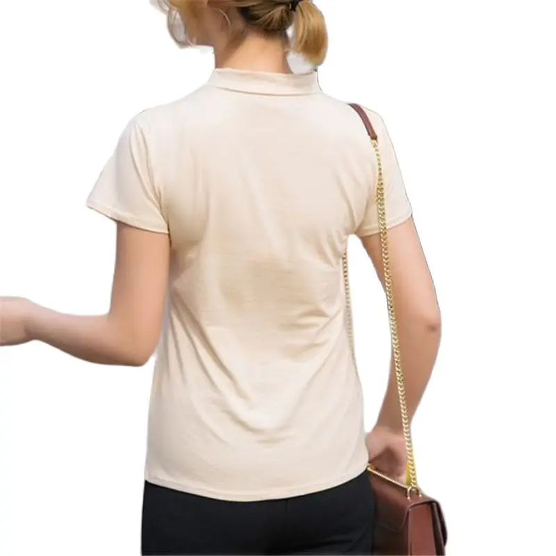 Женская Однотонная футболка с коротким рукавом и воротником-стойкой