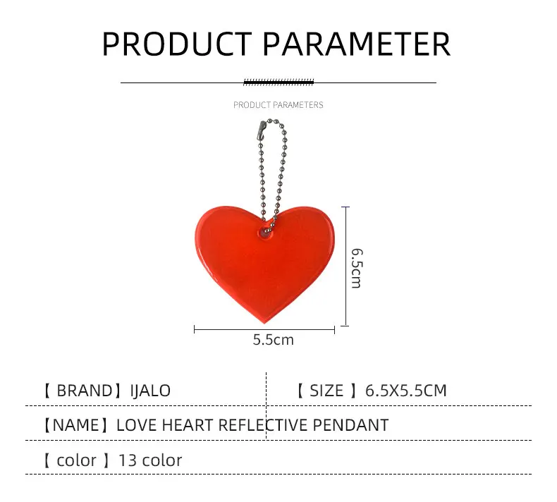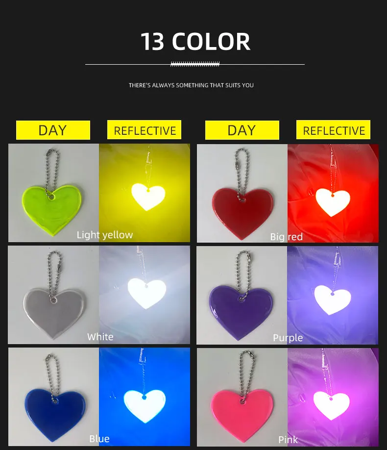 Светоотражающая Сумка-брелок в форме сердца, аксессуары для студенческой и школьной сумки, мягкие брелки-отражатели из ПВХ для обеспечения безопасности