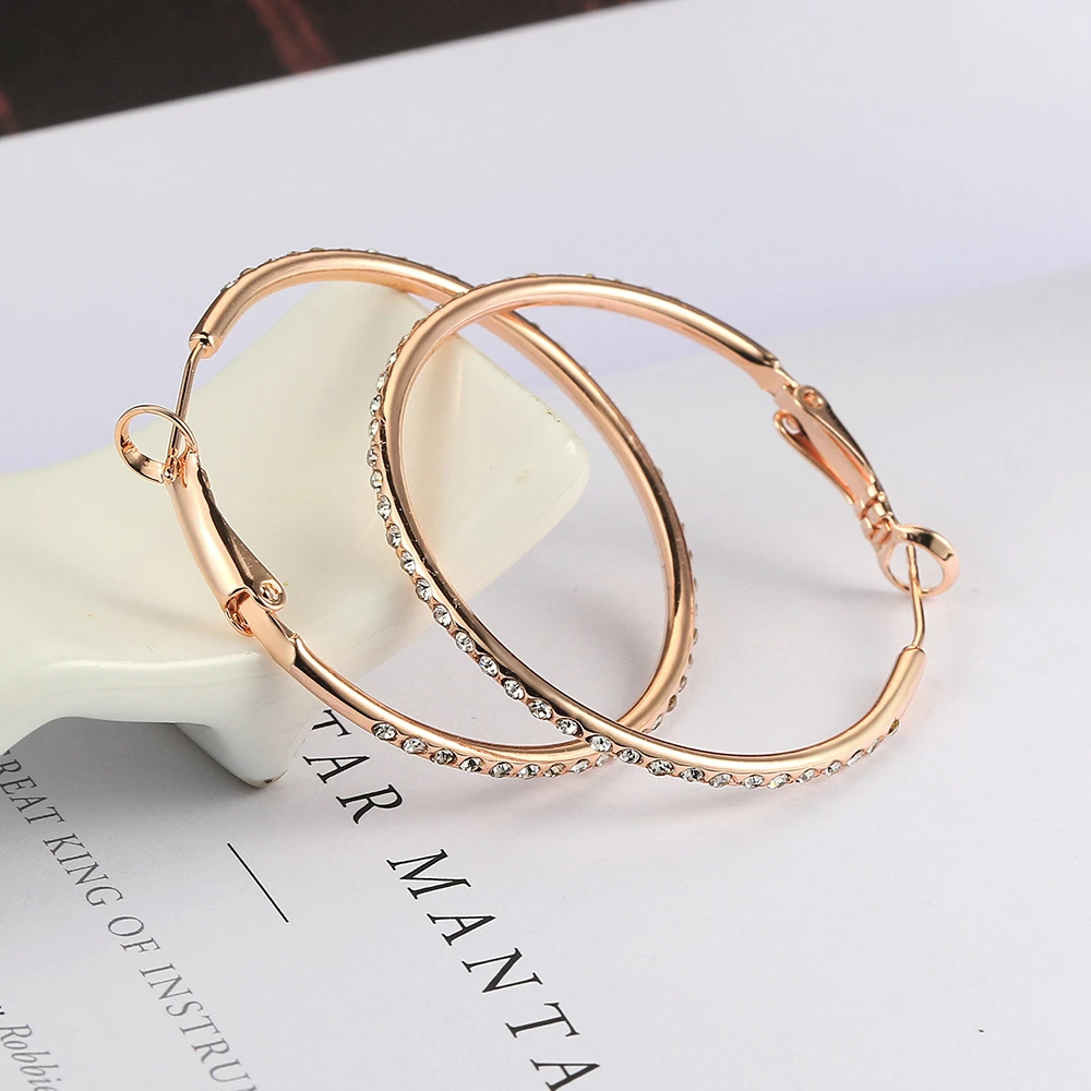 Классические большие Ruond Кристалл Роза золотистые серьги-кольца для женщин австрийский кристалл высшего качества ZYE307