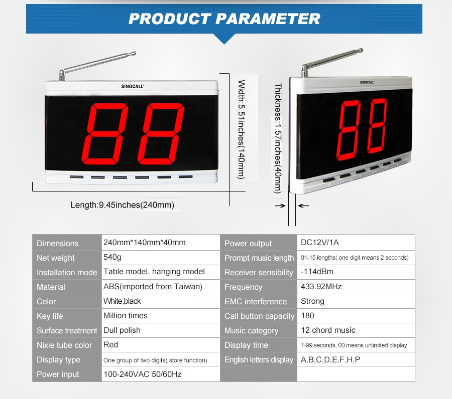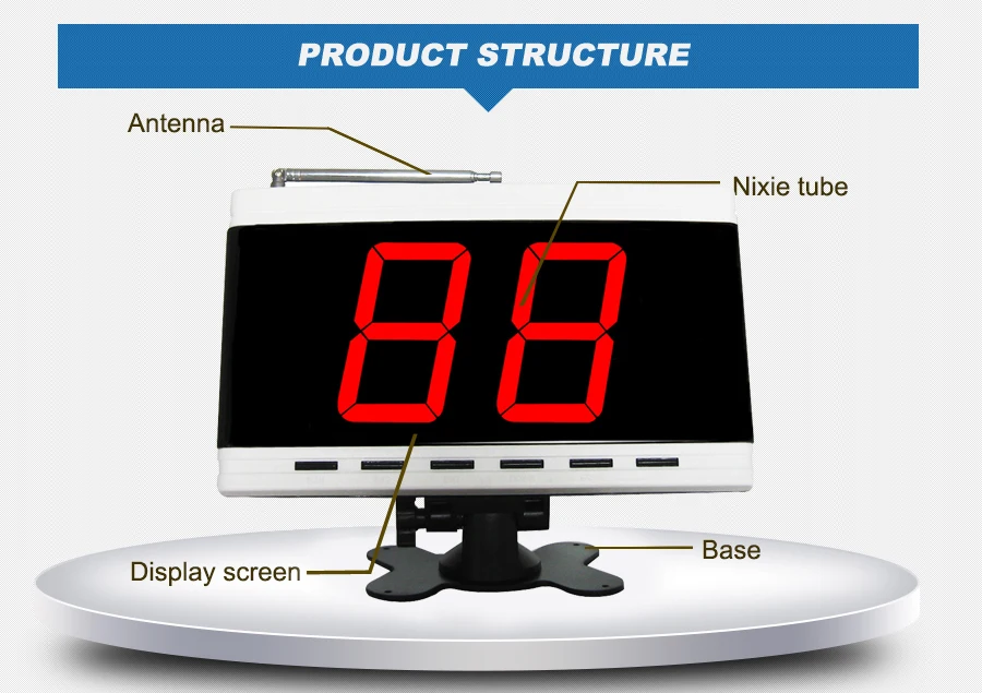 Вы когда-нибудь в ресторане, здесь вы готовы принять ваш заказ, но вы не можете найти в любом месте официанта или без ожидания? Система вызова беспроводного оператора или сервера может решить вашу проблему.Беспроводная Жидкостная система широко используется в области обслуживания. В комплект входит Кнопка использования часов для гостей и приемник сигнала с помощью официанта. Когда гость нуждается в какой услуге, он или она просто нажмите кнопку рядом с ним, его или ее номер стола будет отображаться в музыки или смотреть пейджер предупреждающий голос. Поэтому официант может обеспечить очень своевременное обслуживание. Добро пожаловать на выбор наших продуктов беспроводной системы вызова!