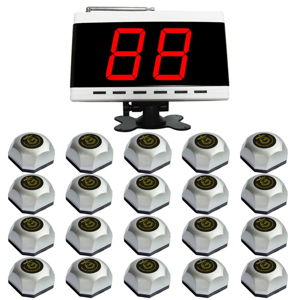 Беспроводной зуммер для официанта SINGCALL с кнопками для 20 столов в пляжном ресторане, баре или кафе, приемник APE9000 с одним экраном