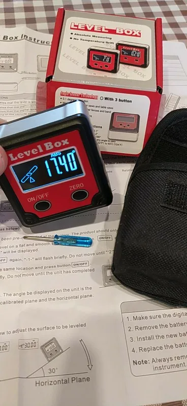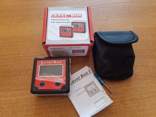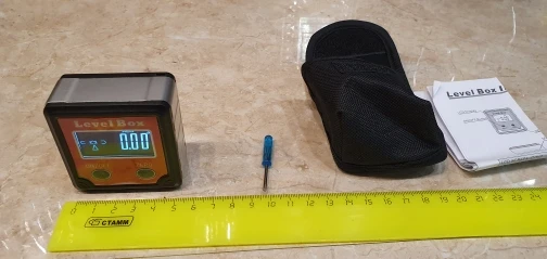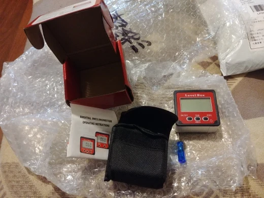 До Москвы угломер дошел за 26 дней, могло было быть быстрее, но на таможне завит на 10 дней. Внешний вид угломера на 3,5 -4 балла, видны следы некачественной сборки. Дискретность отображения угла 0,05 градуса. Стороны угломера не идеально 90 градусов друг к другу, т.е. если вы поставите его нижней частью на поверхность и обнулите показания, а затем повернете влево или вправо на 90 градусов, то угол в 90 градусов на дисплее не получите, отклонения будут порядка, плюс минус 0,2 градусов в обе стороны, также если перевернете на 180 градусов, ситуация аналогичная. Встроенная калибровка не позволяет получить ожидаемый результат. Из преимуществ быстрое и стабильное установление значений угла, цифры на дисплее хорошо читаются под любым углом. Первое впечатление - разочарование, но после пользования в течение нескольких часов пришел к выводу, что это угломер лучше чем тот угломер, что у меня уже есть. Со временем наверное буду покупать модель получше.