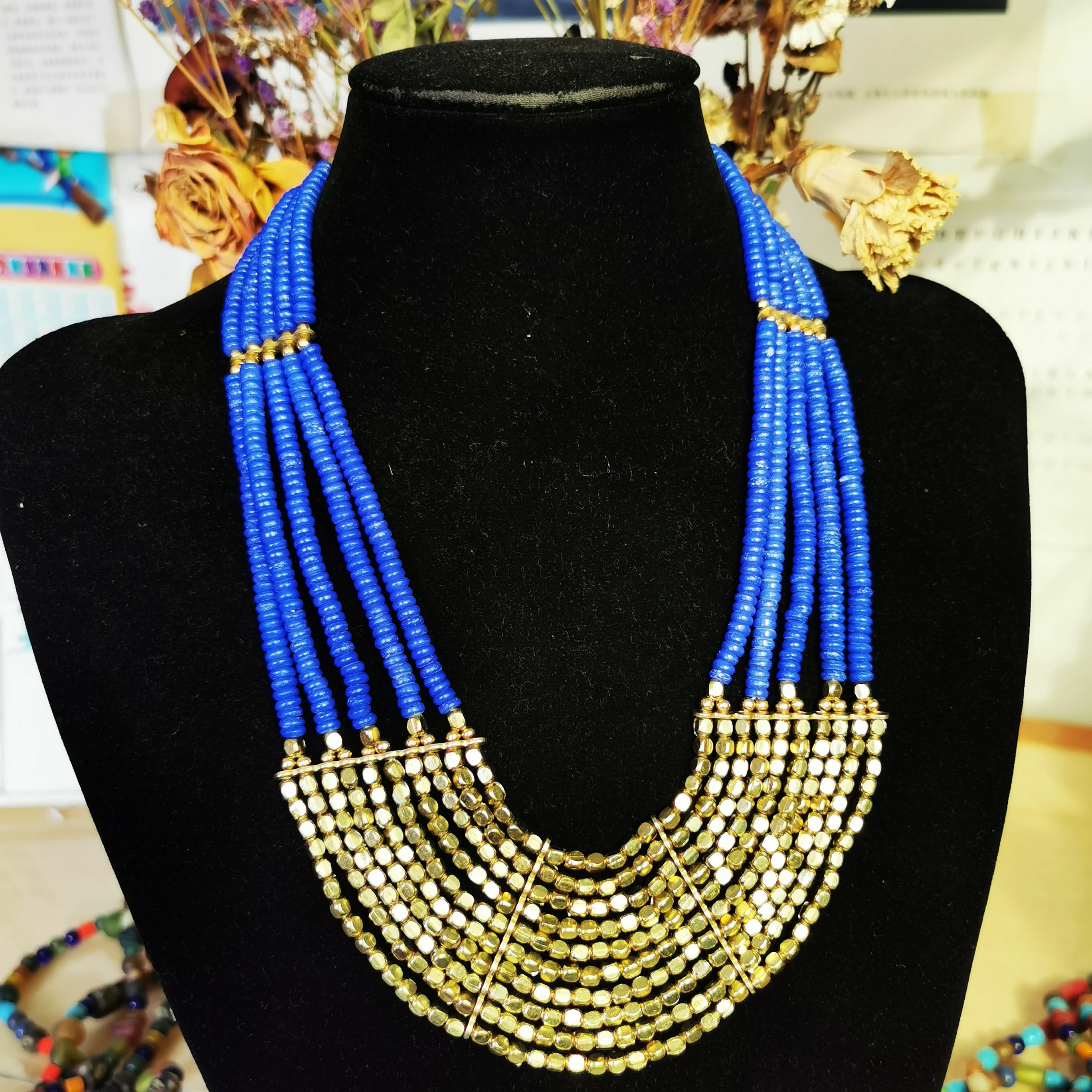 Винтажное многослойное ожерелье Бохо с маленькими латунными бусинами много цветов колье в тибетском стиле ожерелье TNL507